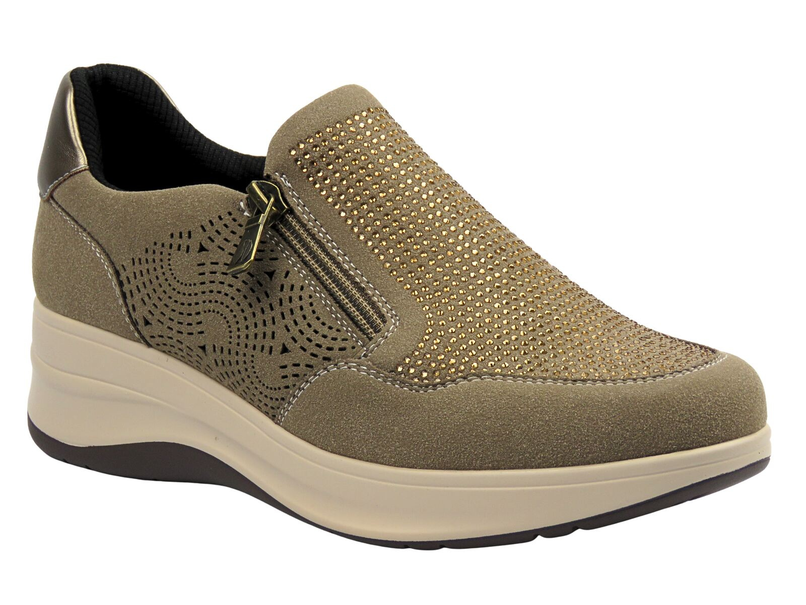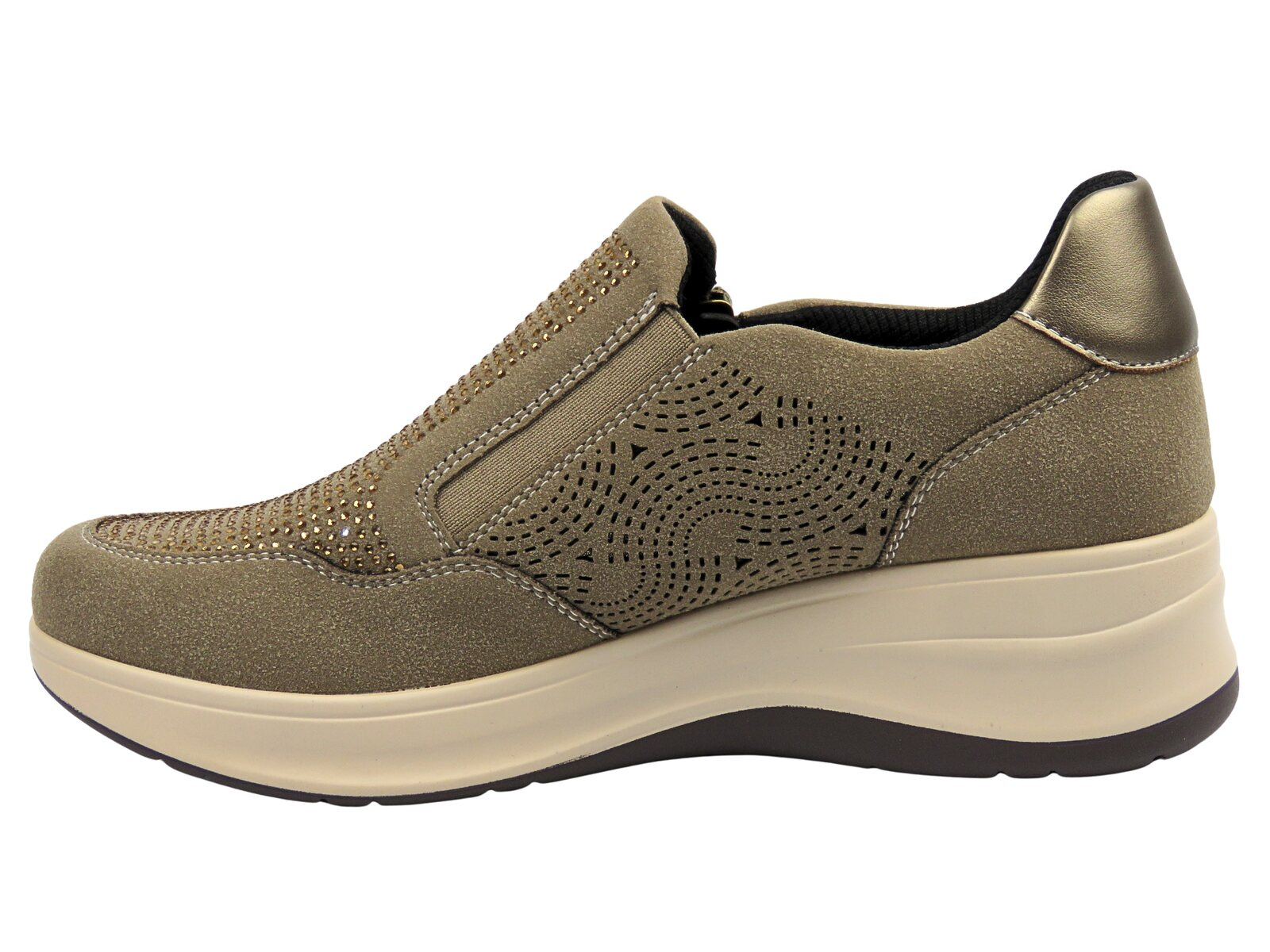 Inblu IC000050 to wyjątkowo wygodne damskie półbuty stworzone z myślą o codziennym komforcie. Wykonane z połączenia skóry ekologicznej i tkaniny, gwarantują przewiewność oraz estetyczny wygląd. Beżowy odcień dopełniony subtelnym połyskiem nadaje im eleganckiego, kobiecego charakteru.
