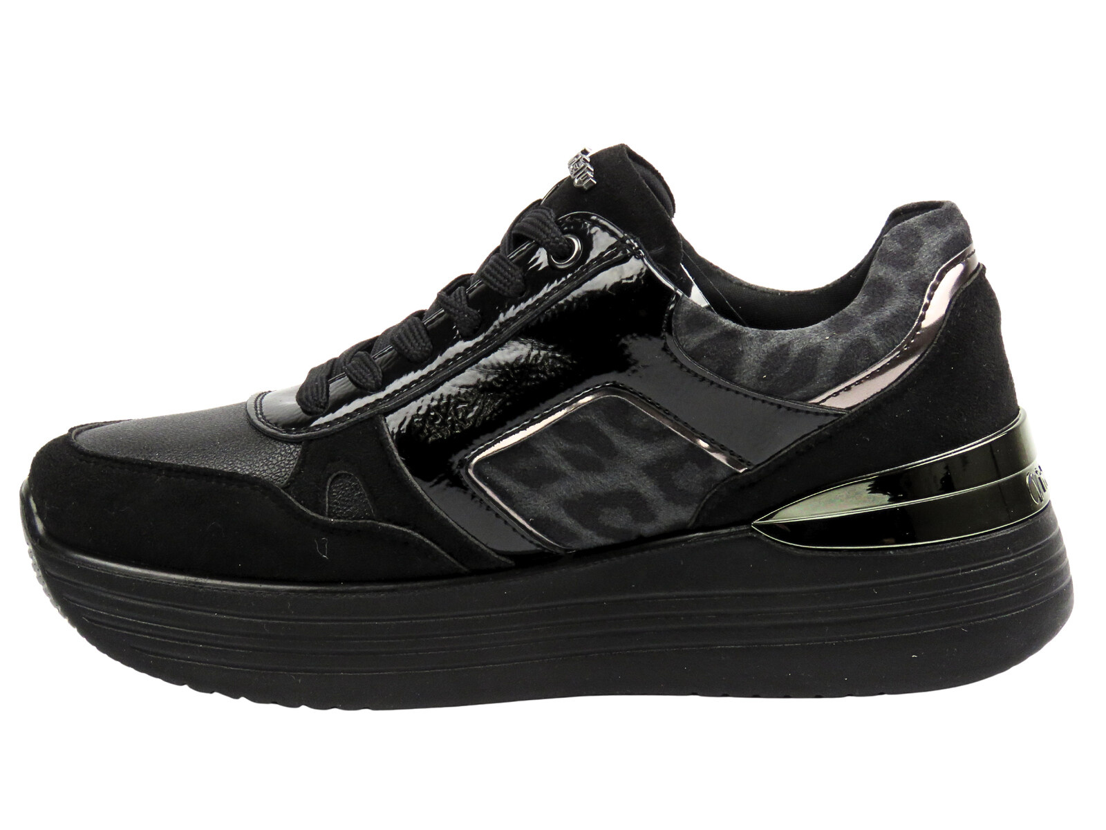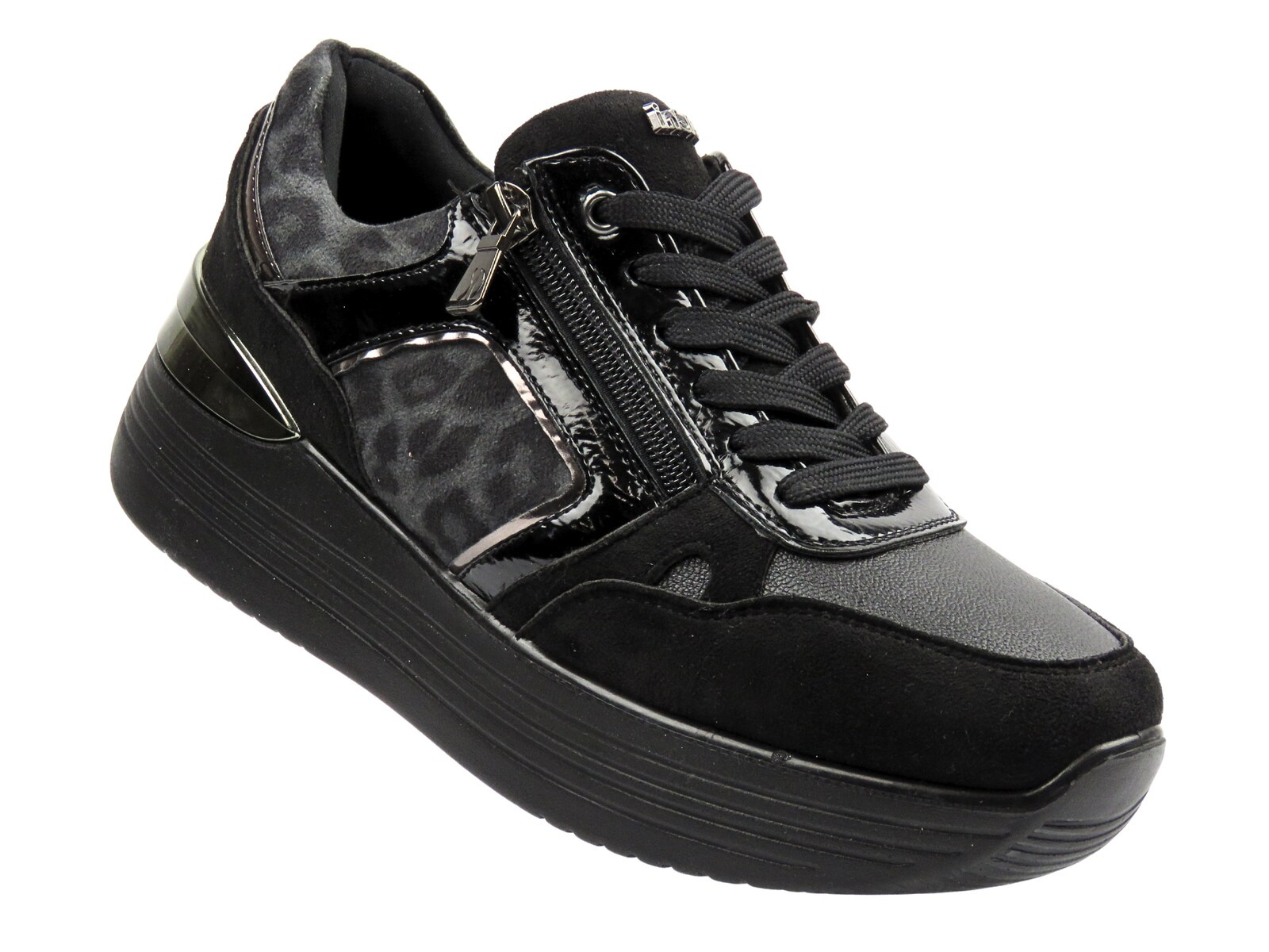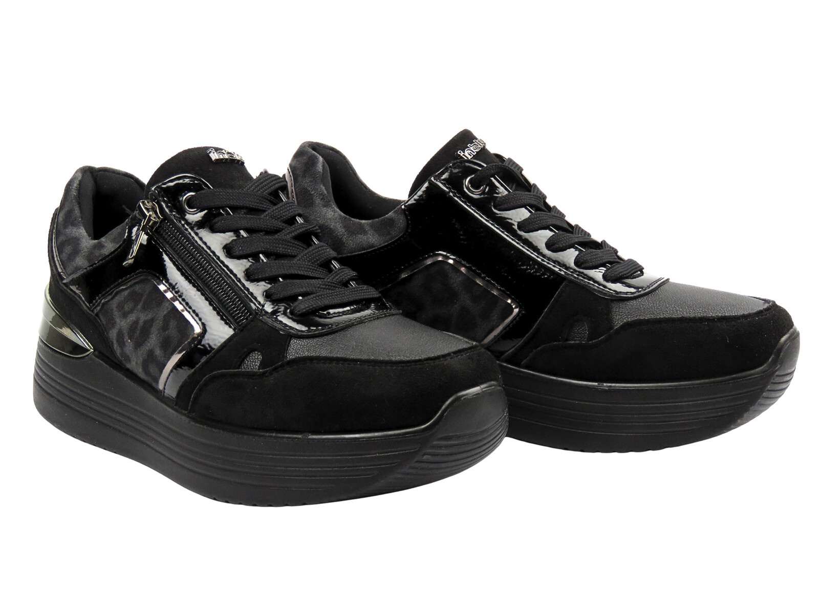 Inblu IN000466 to komfortowe damskie półbuty o nowoczesnym, sportowym charakterze. Wykonane z połączenia skóry ekologicznej i tkaniny, oferują nie tylko atrakcyjny wygląd, ale także przewiewność i wygodę podczas codziennego noszenia. Czarny kolor z połyskującymi elementami oraz subtelnym wzorem dodaje im modnego i kobiecego wykończenia.