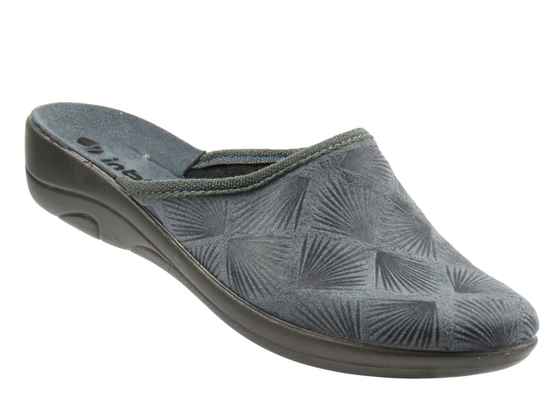 Inblu 5D-27 to przytulne i praktyczne damskie kapcie, które zapewniają relaks w domowym zaciszu. Cholewka wykonana z miękkiej tkaniny w odcieniu szarości zdobiona jest geometrycznym wzorem, który dodaje obuwiu nowoczesnego i eleganckiego charakteru.