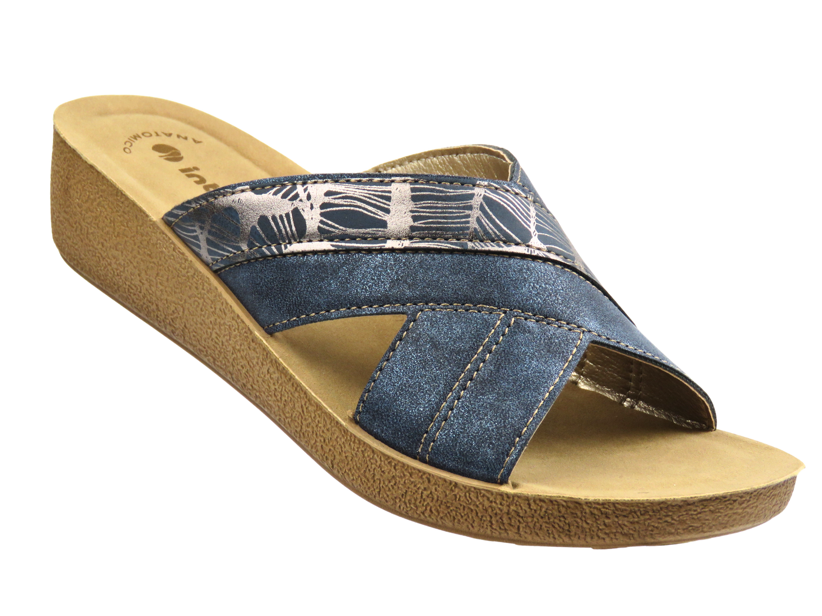 Wygodne klapki damskie na koturnie INBLU TP-49, granat
