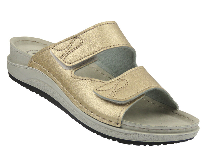 Model posiada dwa regulowane paski na rzep, które umożliwiają idealne dopasowanie obuwia do stopy. Podeszwa o wysokości 4 cm skutecznie amortyzuje kroki, odciąża stawy i zwiększa stabilność podczas chodzenia.