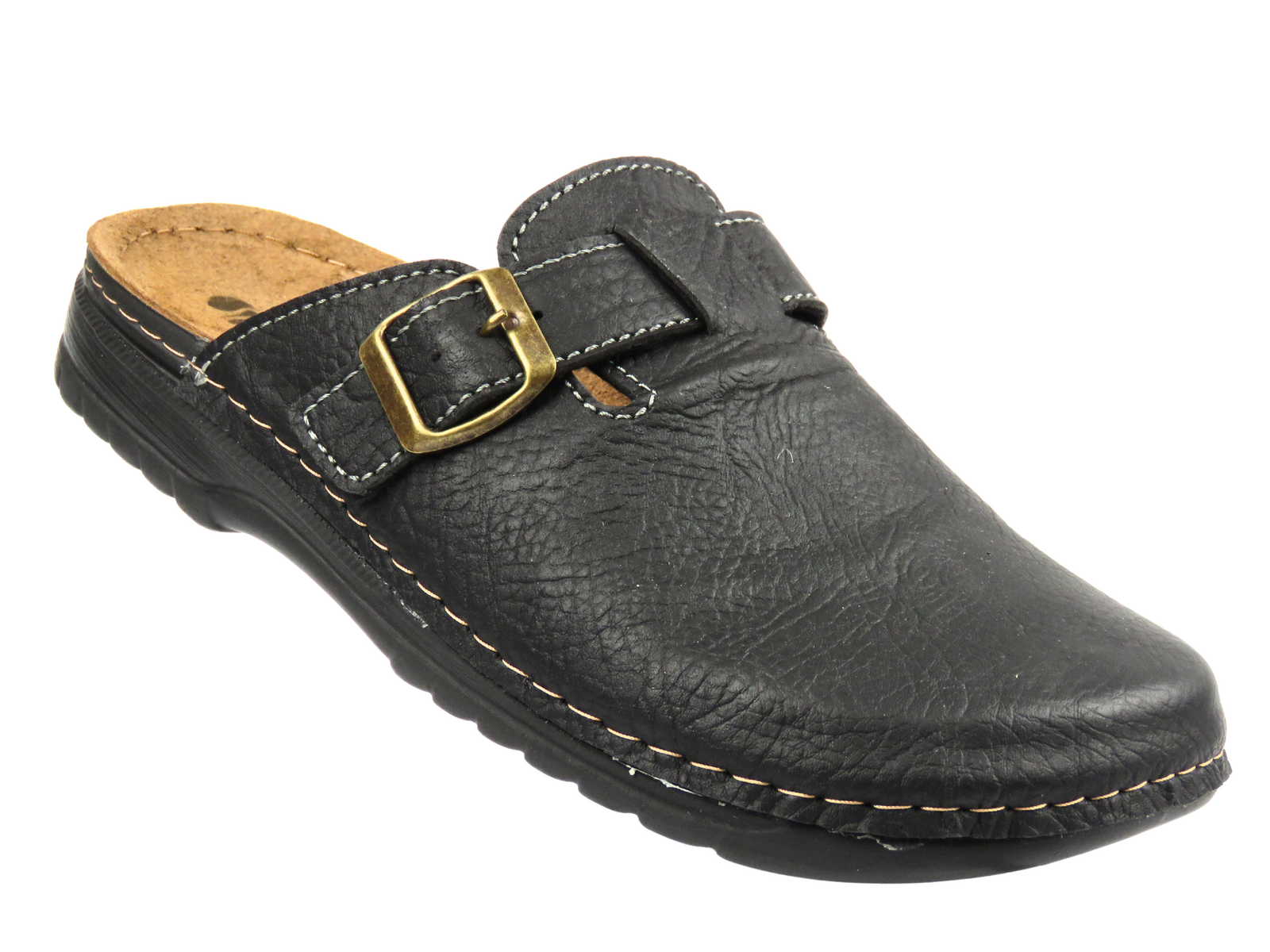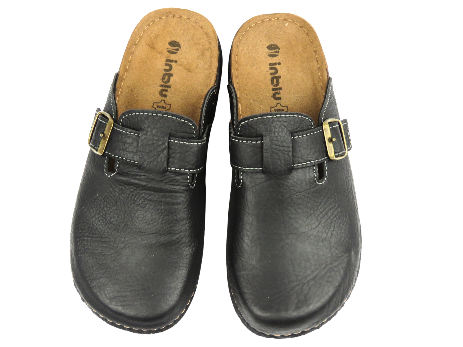 INBLU 35-24 to solidne i komfortowe męskie klapki w klasycznym czarnym kolorze, stworzone z myślą o codziennym użytkowaniu w domu i pracy. Zabudowany przód oraz regulowany pasek sprawiają, że model ten zapewnia stabilność oraz dobre trzymanie stopy.