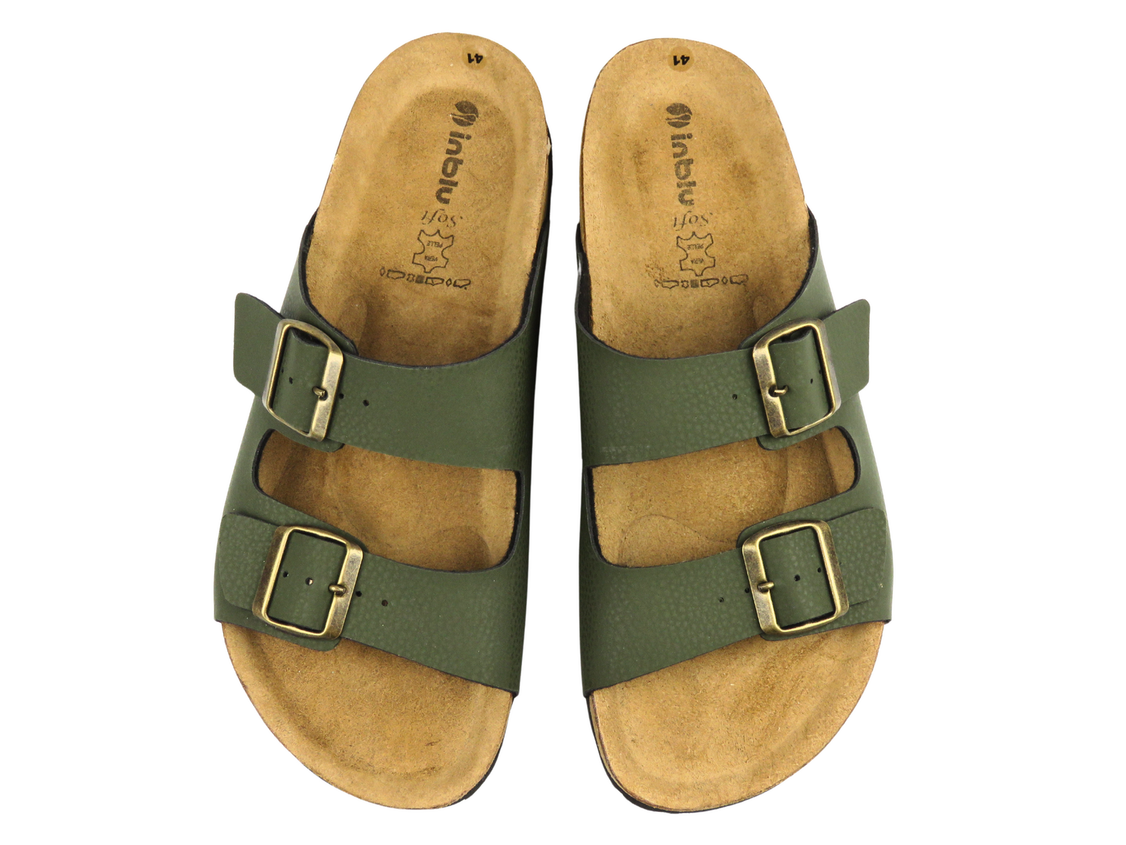INBLU NU-09 to praktyczne i stylowe męskie klapki w modnym zielonym kolorze, stworzone z myślą o codziennym komforcie. Ich klasyczny fason z dwoma paskami i regulowanymi klamrami pozwala idealnie dopasować obuwie do stopy.