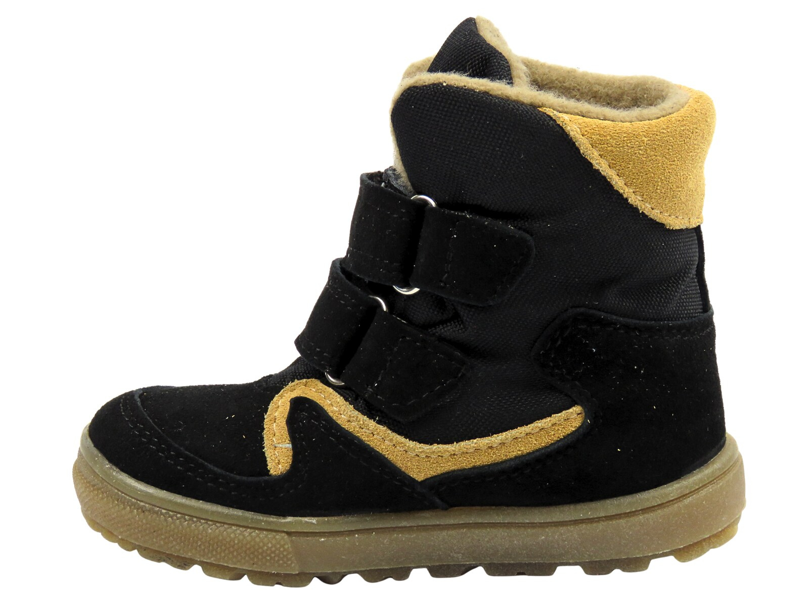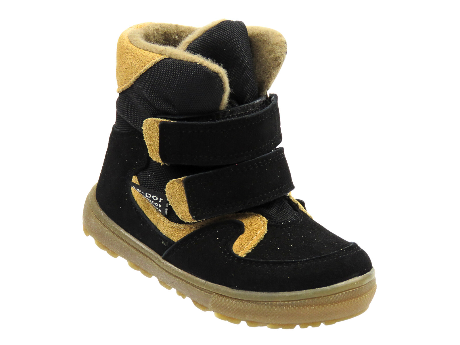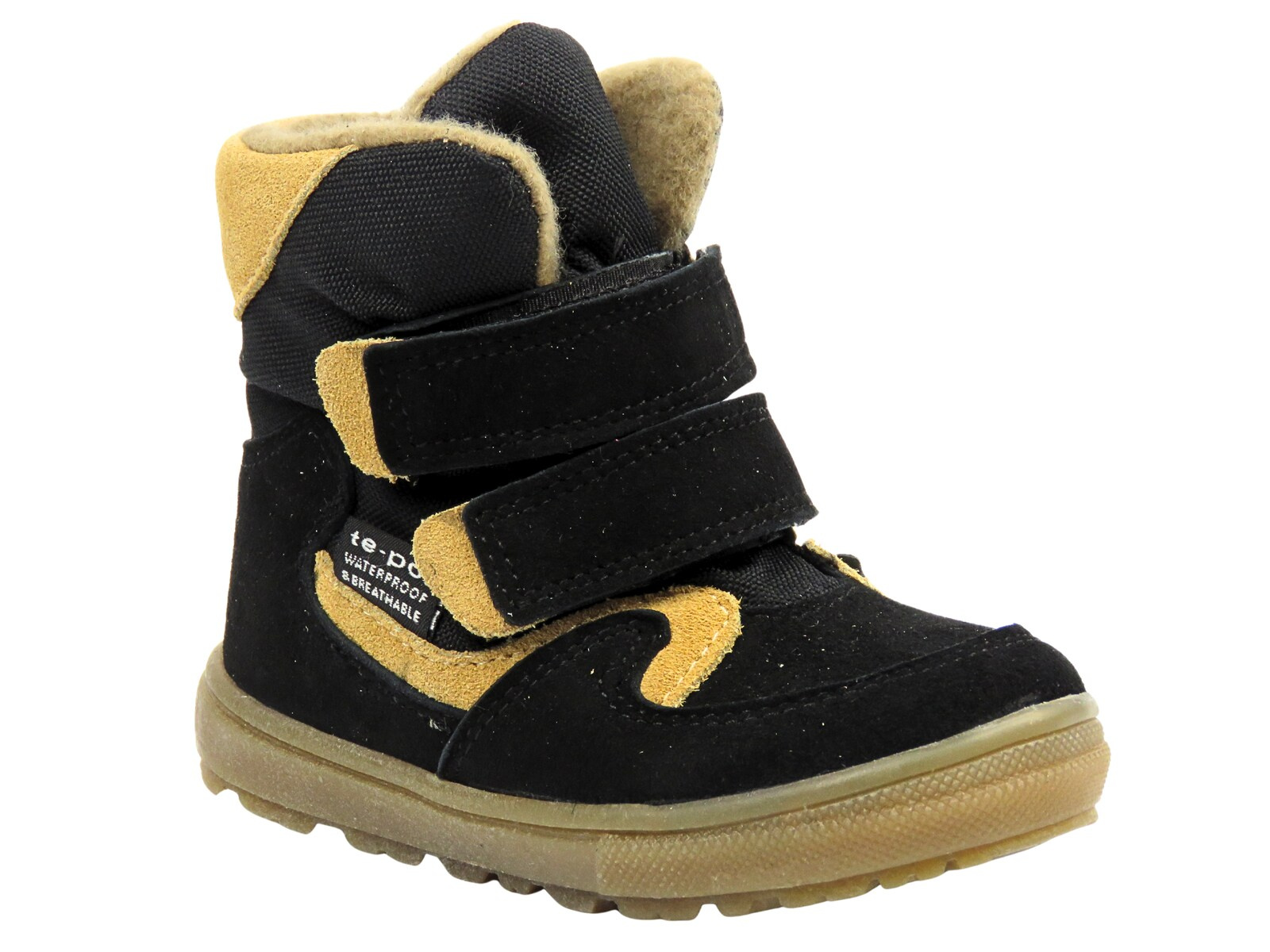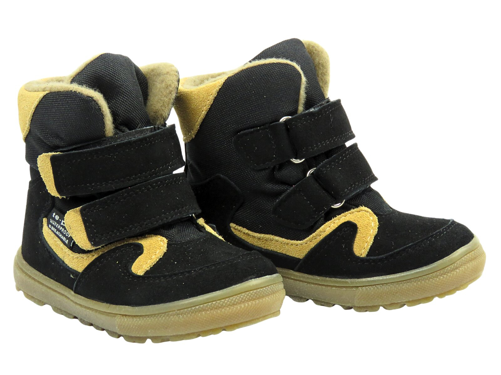 Dziecięce buty zimowe 198 z wełnianym ociepleniem, czarno-beżowe