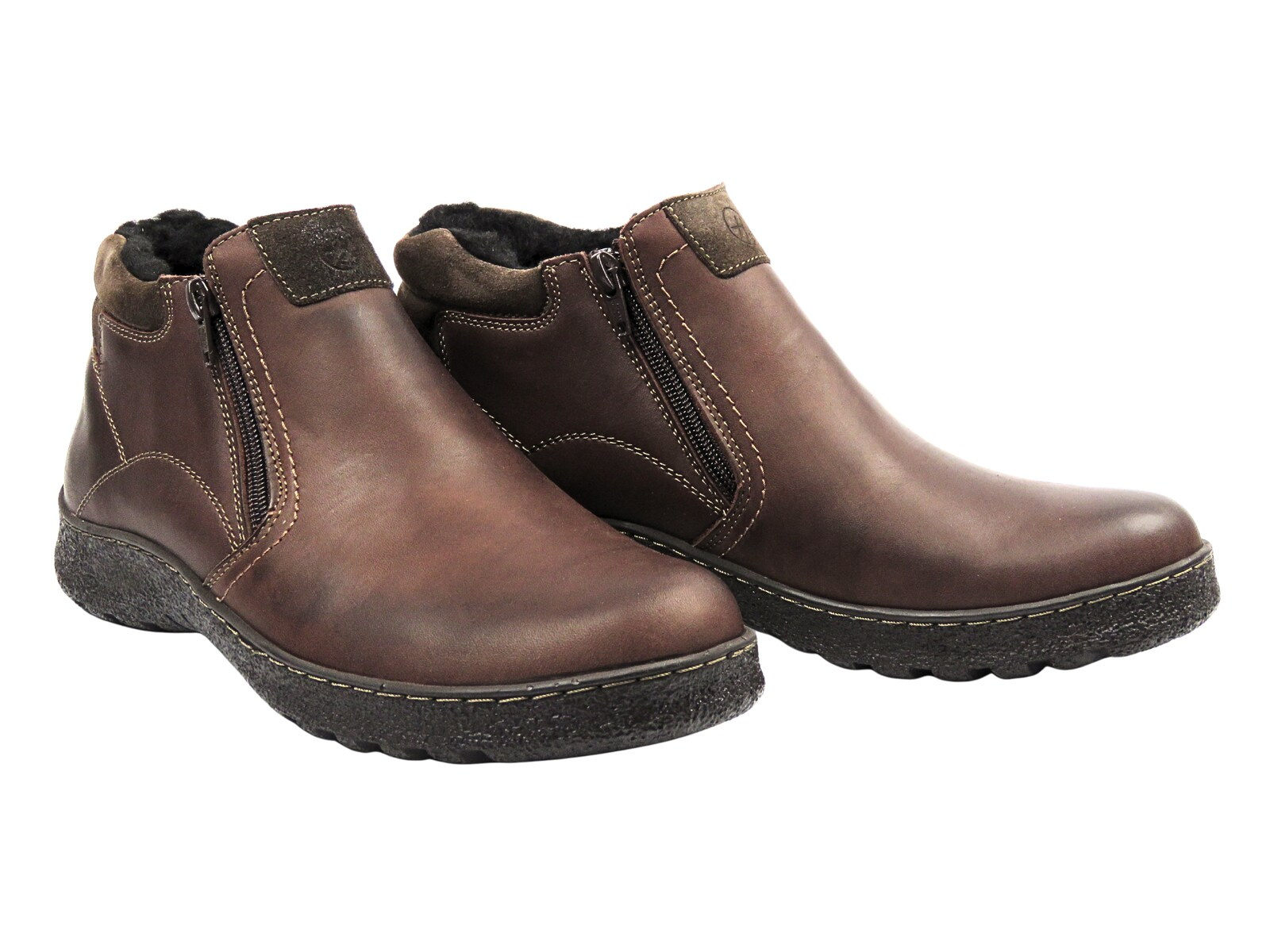 Helios 827 to wyjątkowo komfortowe męskie trzewiki wykonane z naturalnej skóry, stworzone z myślą o mężczyznach ceniących wygodę, trwałość i ciepło w chłodniejsze dni. Model w eleganckim odcieniu brązu doskonale komponuje się z codziennymi stylizacjami, a praktyczny boczny zamek ułatwia szybkie zakładanie i zdejmowanie obuwia.