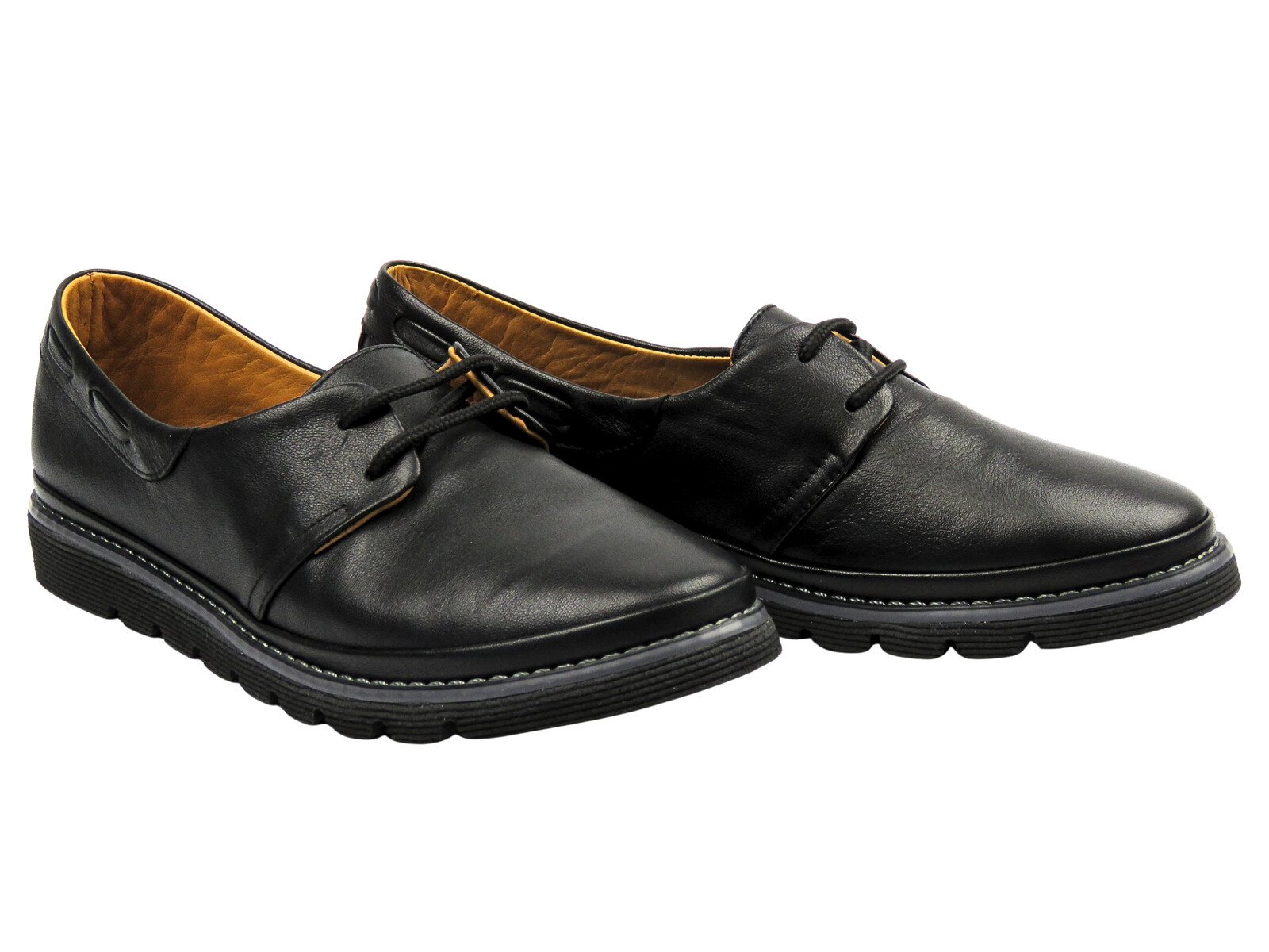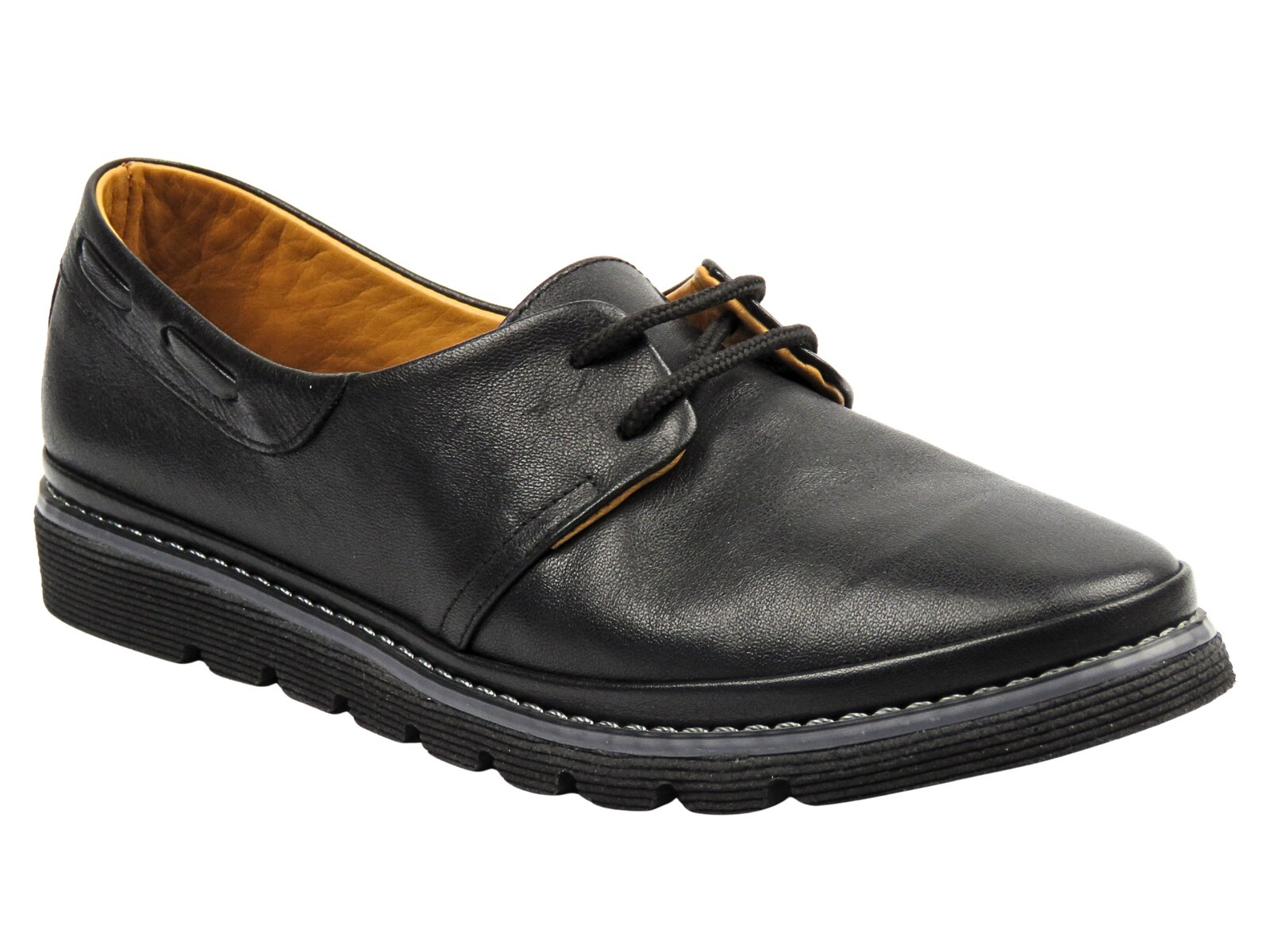 Wygodne półbuty damskie ze skóry naturalnej 01067282, czarne