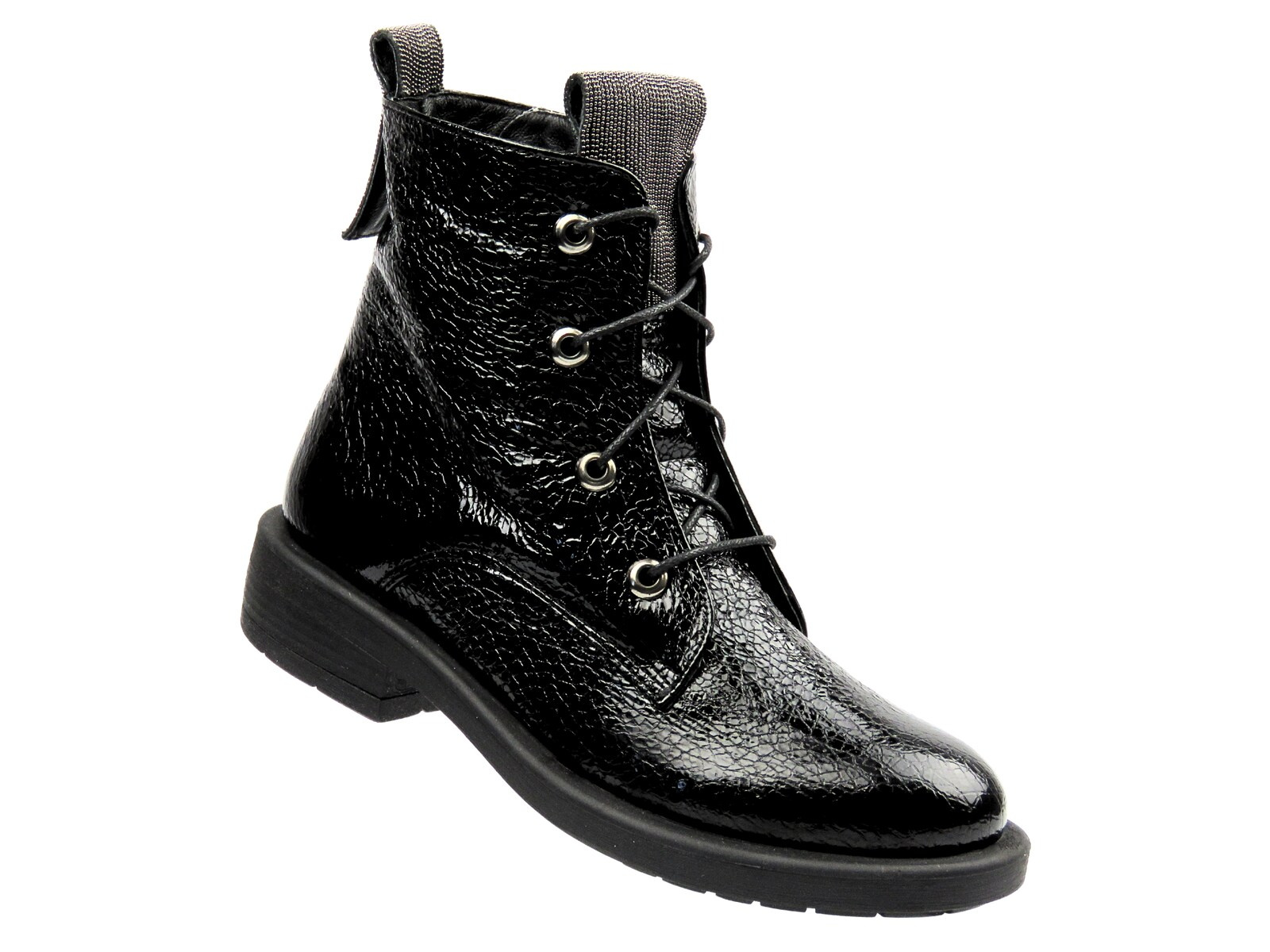 Czarne botki damskie Venezia 00101436R to propozycja dla kobiet, które szukają połączenia wygody i elegancji w jesienno-zimowych stylizacjach. Cholewka wykonana z wysokiej jakości skóry naturalnej subtelnie połyskuje i ma ciekawą fakturę, dzięki czemu buty prezentują się nowocześnie i stylowo. Klasyczny krój z wiązaniem doskonale dopasowuje się do stopy i łydki, a stabilny obcas o wysokości 5 cm dodaje kilku centymetrów wzrostu, nie odbierając komfortu nawet przy dłuższym chodzeniu.