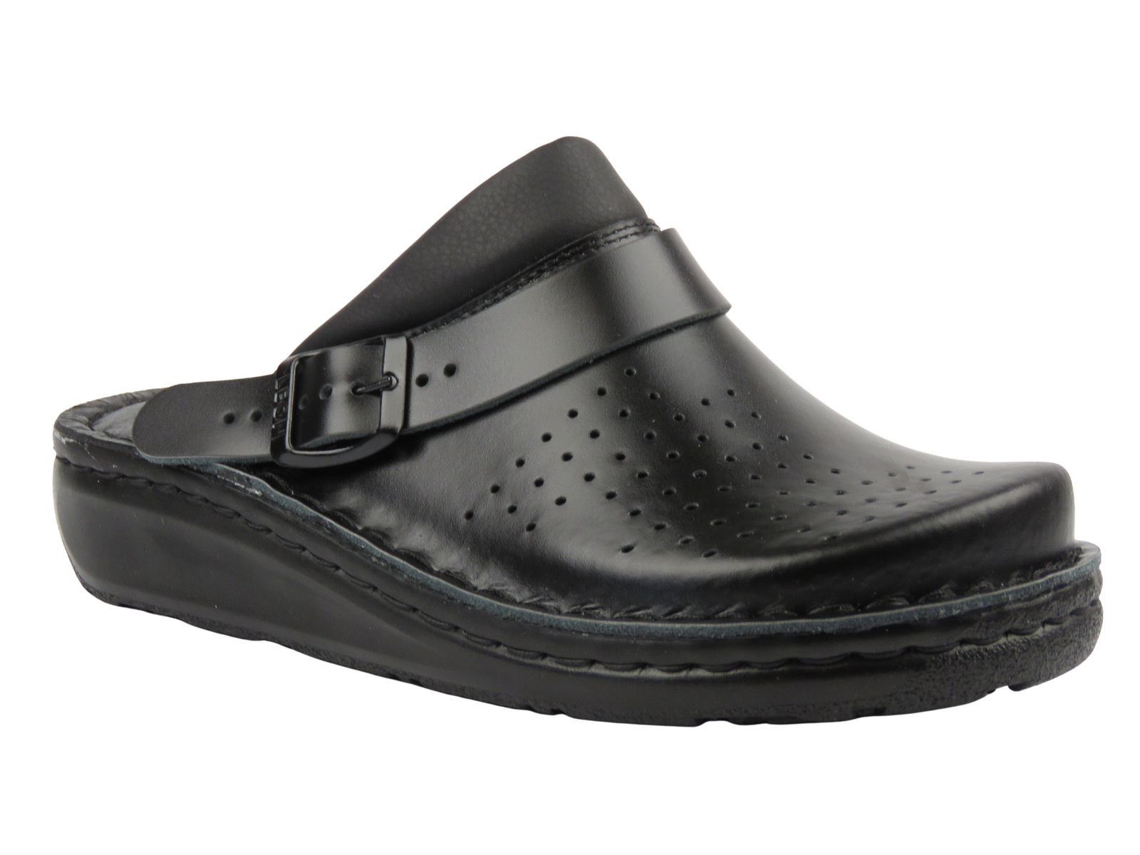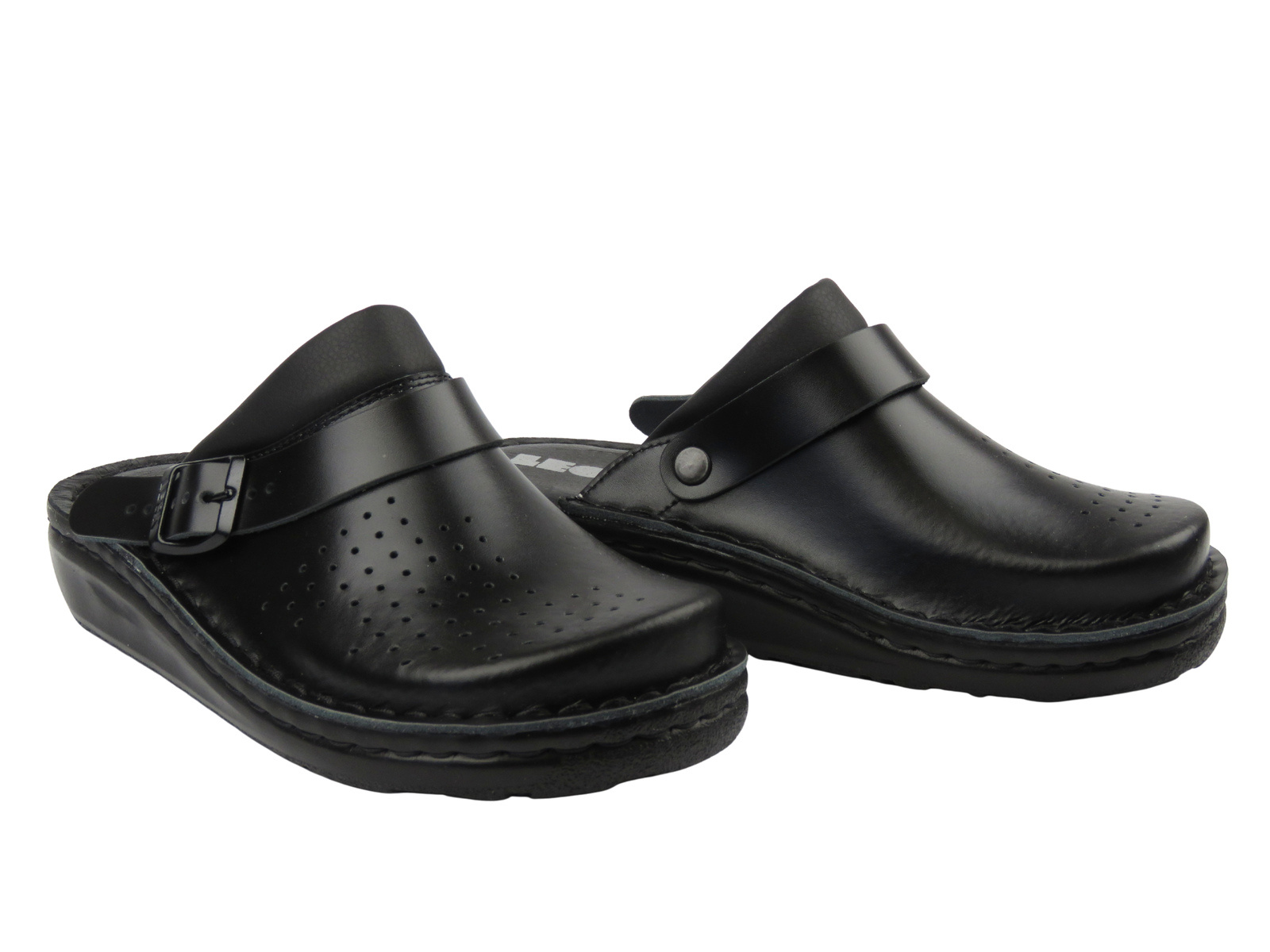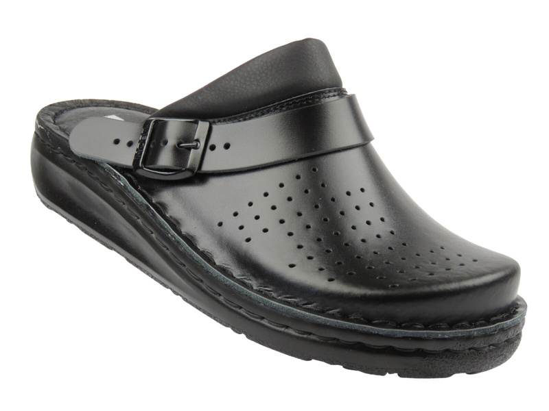 Naturalna skóra dobrze dopasowuje się do stopy i sprzyja cyrkulacji powietrza. Chodaki sprawdzą się w pracy, w domu i podczas dłuższego stania.