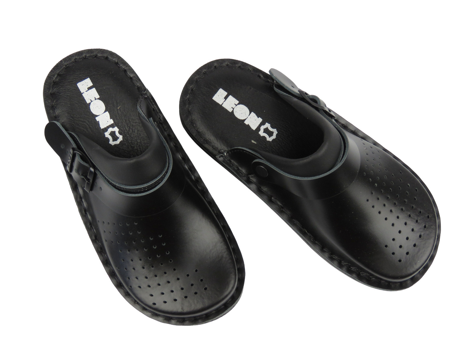 Skórzane chodaki Leon 300, czarne