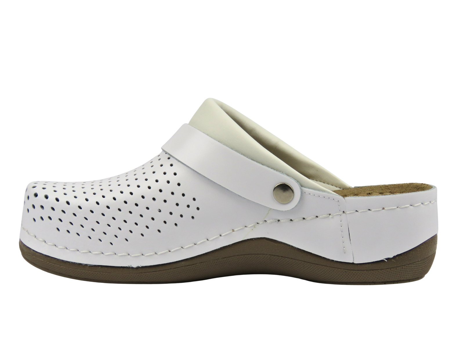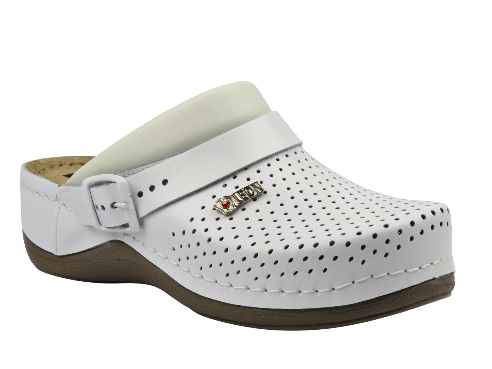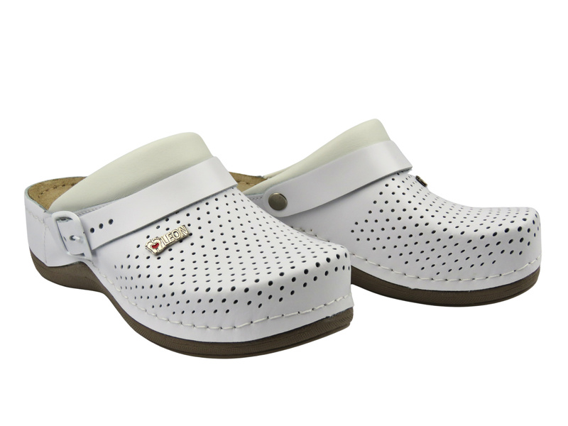 Model Leon 991 to eleganckie, zabudowane klapki w klasycznym białym kolorze, które łączą nowoczesny wygląd z komfortem na każdy dzień.