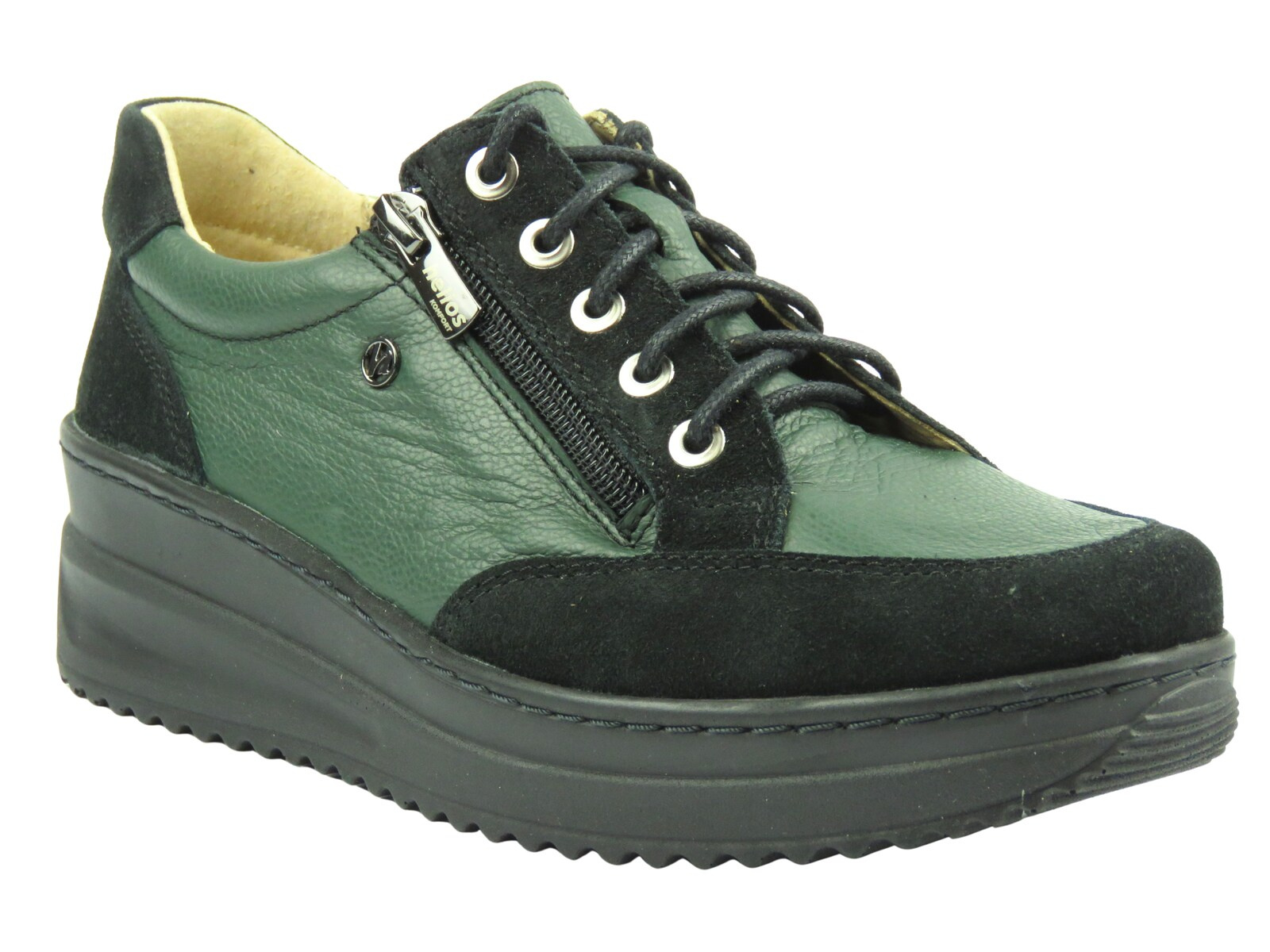 Model Helios 431 to klasyczne, zabudowane półbuty w ponadczasowym ciemnozielonym kolorze, które łączą styl i wygodę w codziennym użytkowaniu.