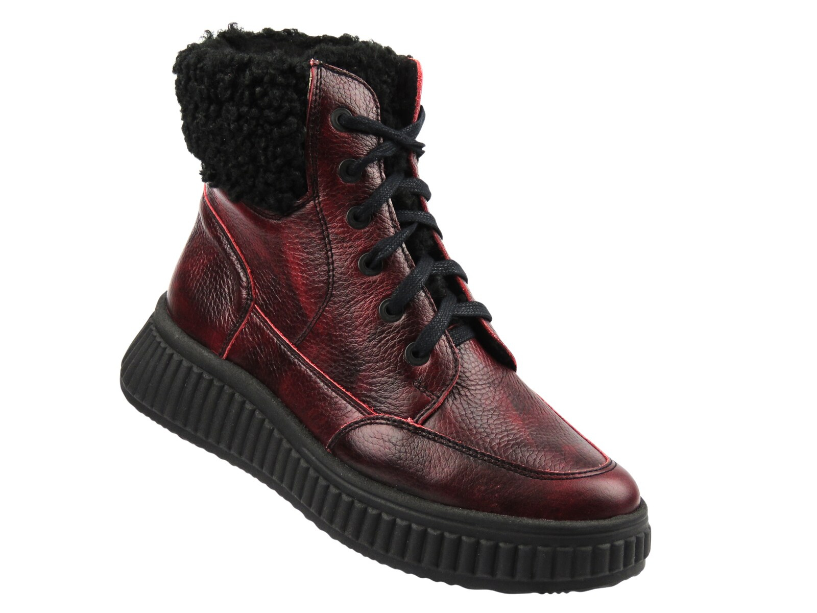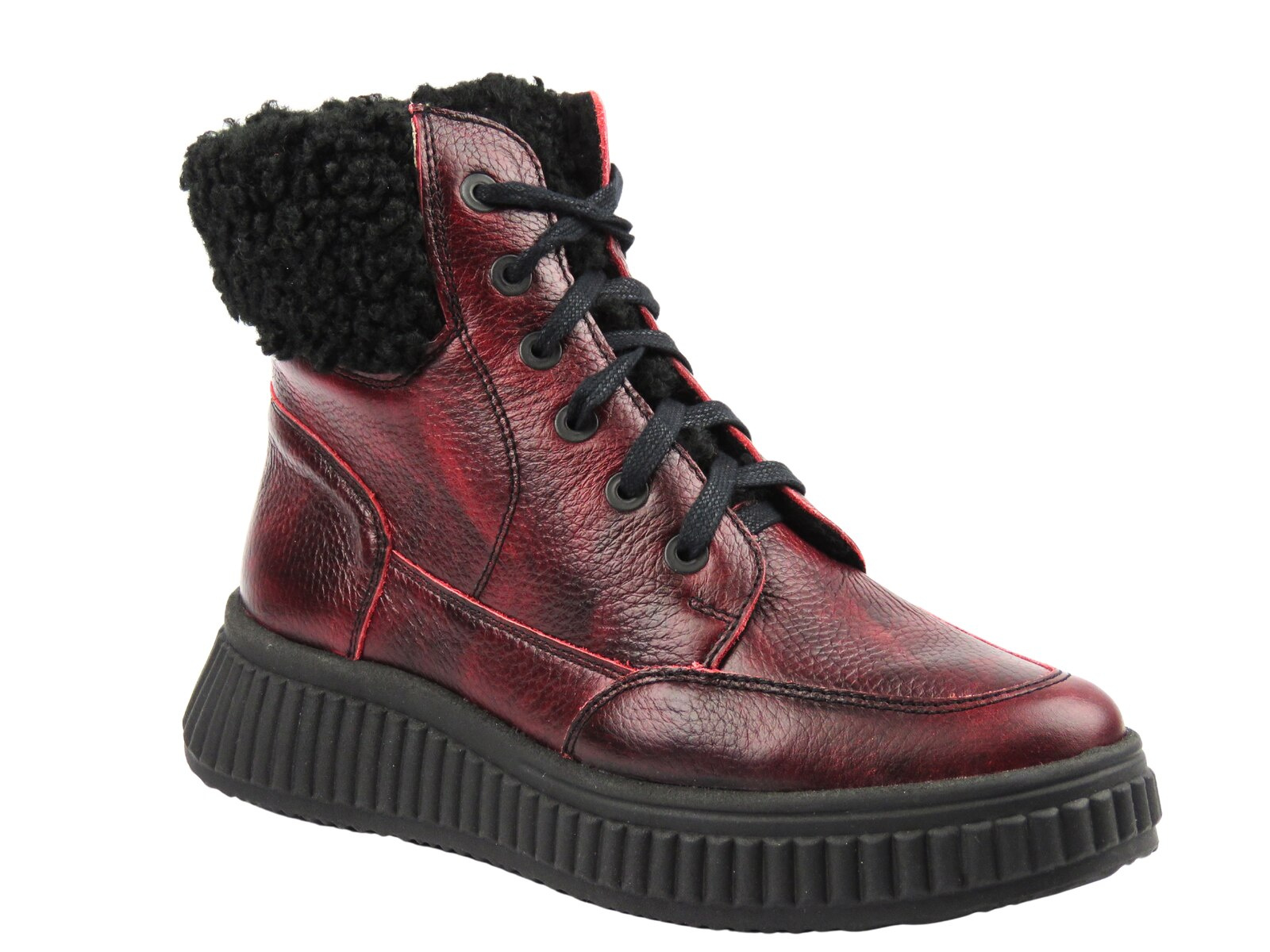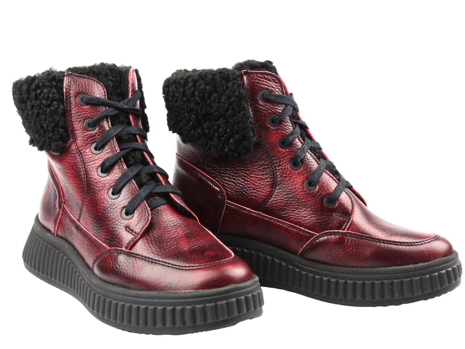 Botki Helios Komfort 604 czerwone – naturalna skóra, ciepło i stabilność na co dzień