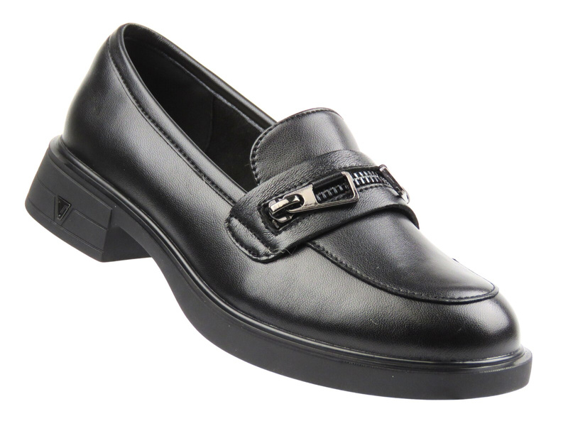 Vinceza 39965 to propozycja dla kobiet, które cenią wygodę i elegancję w codziennym obuwiu. Mokasyny wykonane z naturalnej skóry w klasycznej czerni, zachwycają uniwersalnym fasonem z nowoczesną ozdobą w postaci dekoracyjnego zamka z przodu.