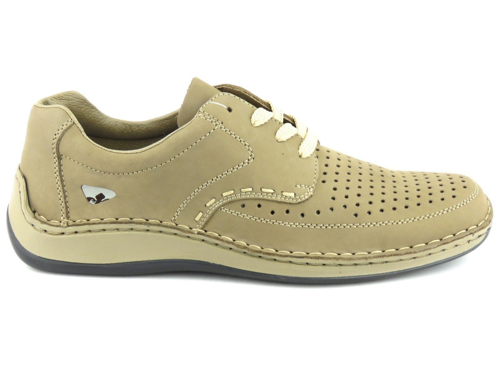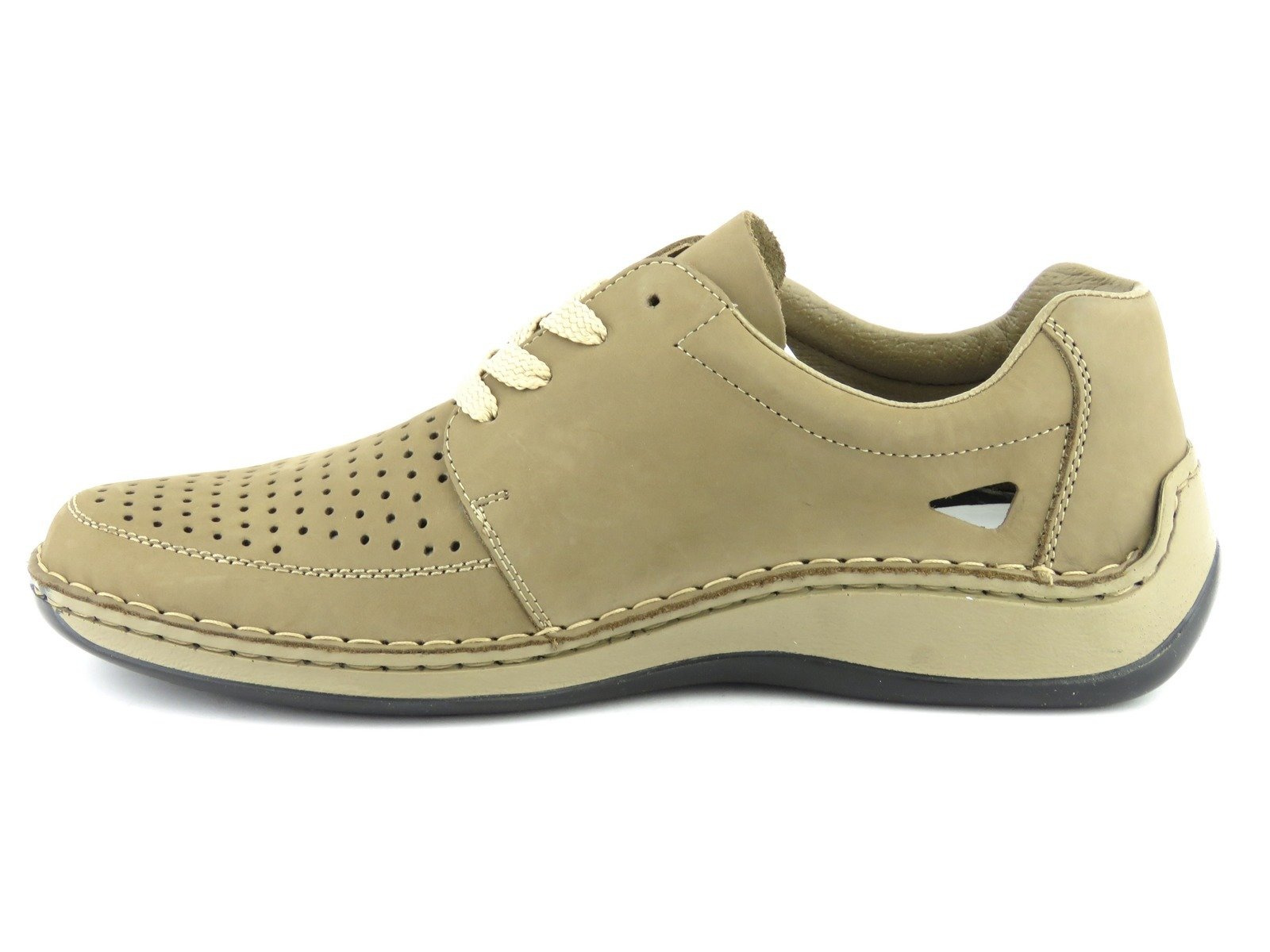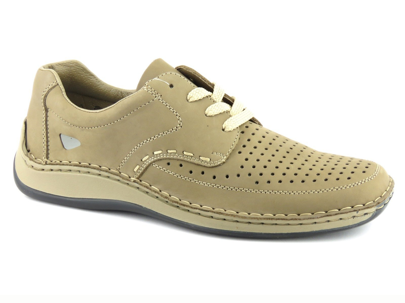 Półbuty męskie renomowanej marki Rieker zostały wykonane z wysokiej jakości skóry naturalnej typu nabuk.