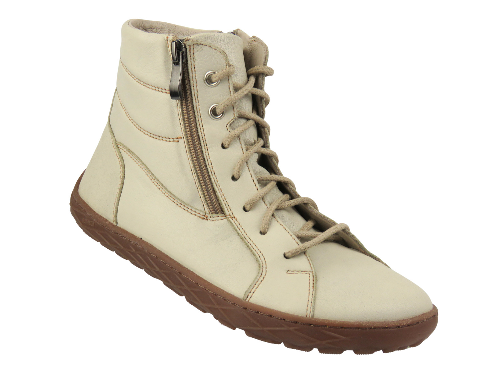 Barefoot skórzane minimalistyczne botki damskie Nika Komfort 1464, beżowe