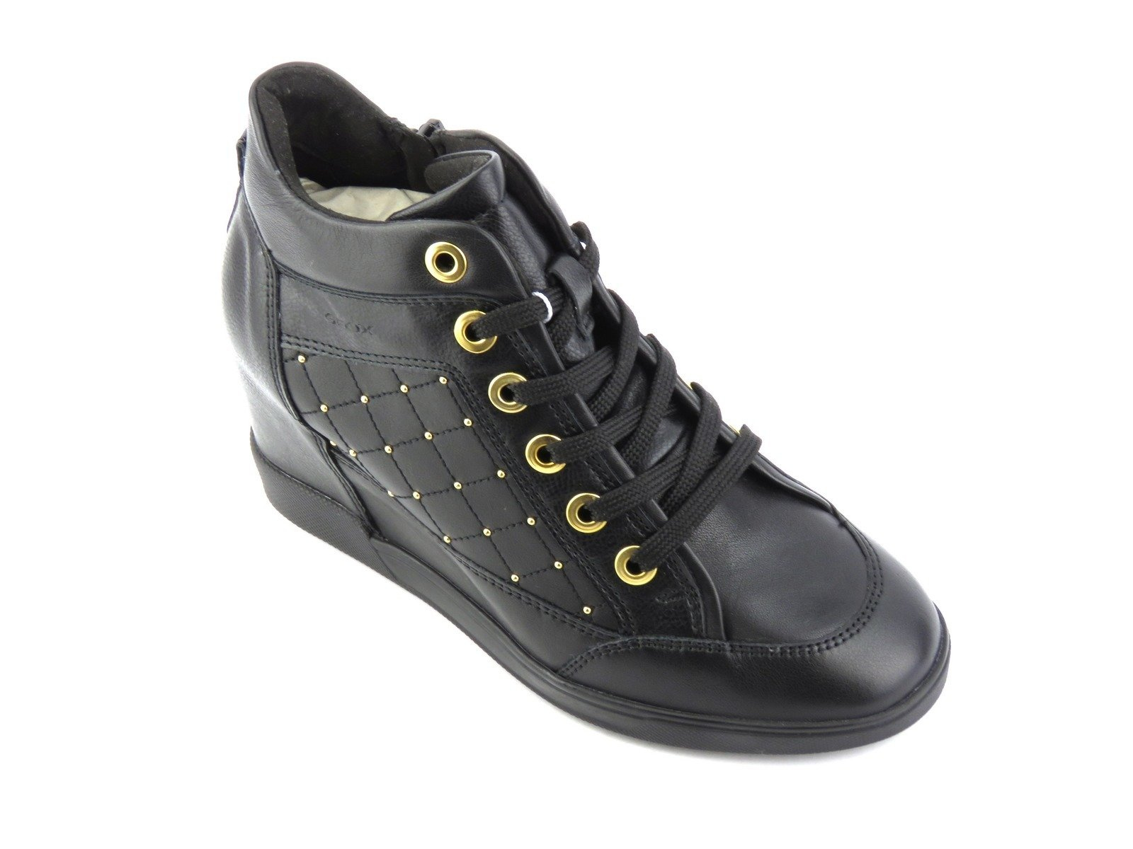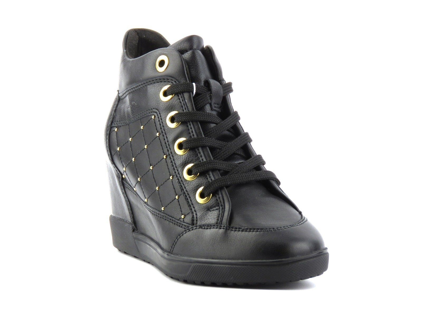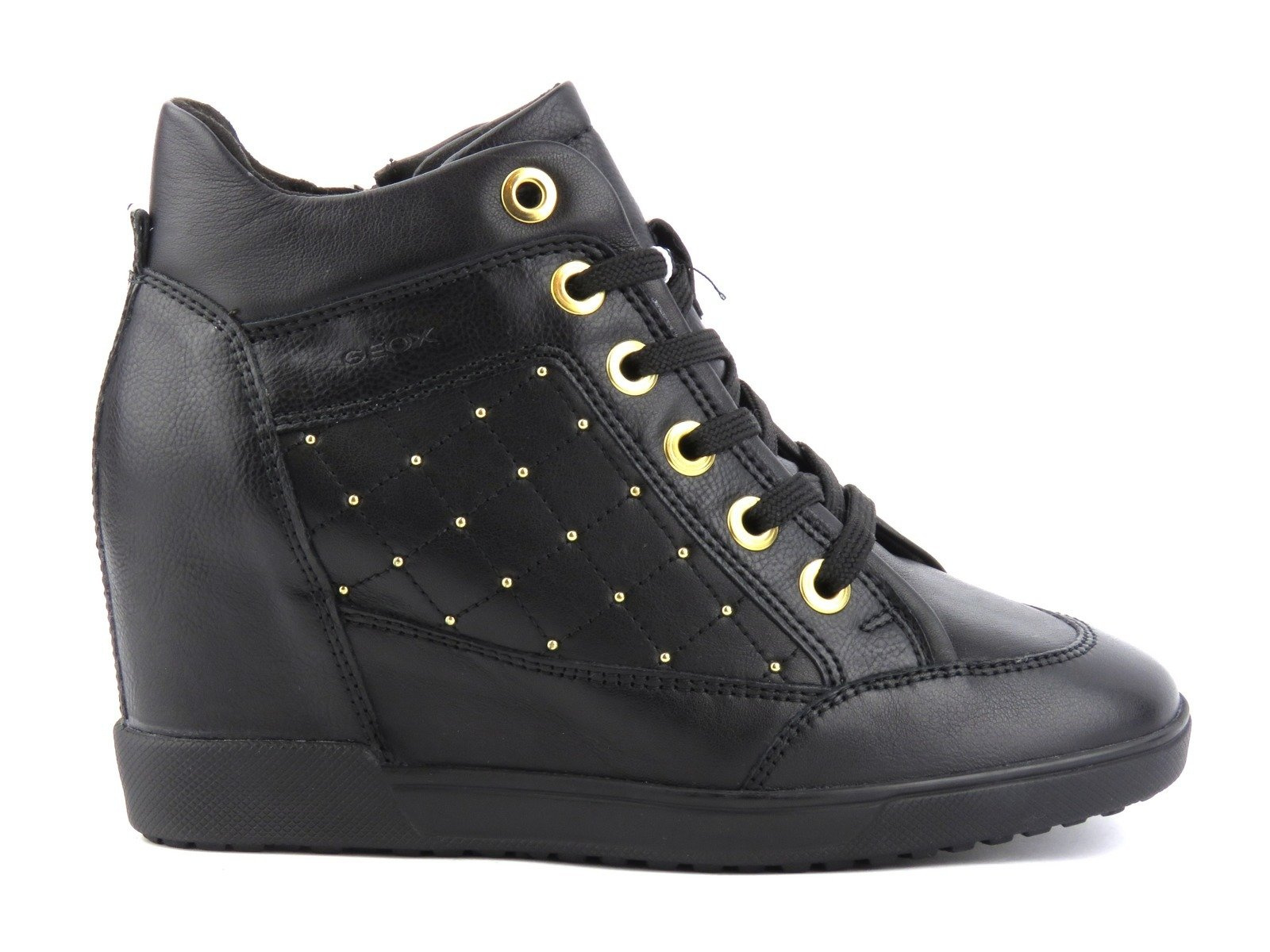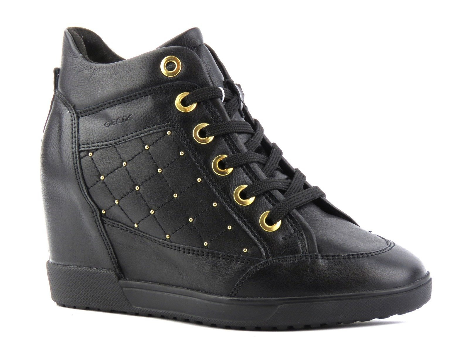 Sneakersy damskie renomowanej włoskiej marki Geox zostały wykonane z wysokiej jakości skóry naturalnej licowej. Suwak pozwala na szybkie i wygodne zakładanie obuwia. Dzięki regulacji sznurowadeł, obuwie można dopasować do różnego kształtu stopy. Model jest wyposażony w technologię Geox Respira gwarantującą przepuszczalność powietrza, dzięki czemu stopy oddychają. Perforowana podeszwa o właściwościach antypoślizgowych zbudowana jest na bazie membrany z mikroporami, która pochłania i wydala wilgoć, nie przepuszczając wody do wnętrza buta, co zapewnia nieprzemakalność.