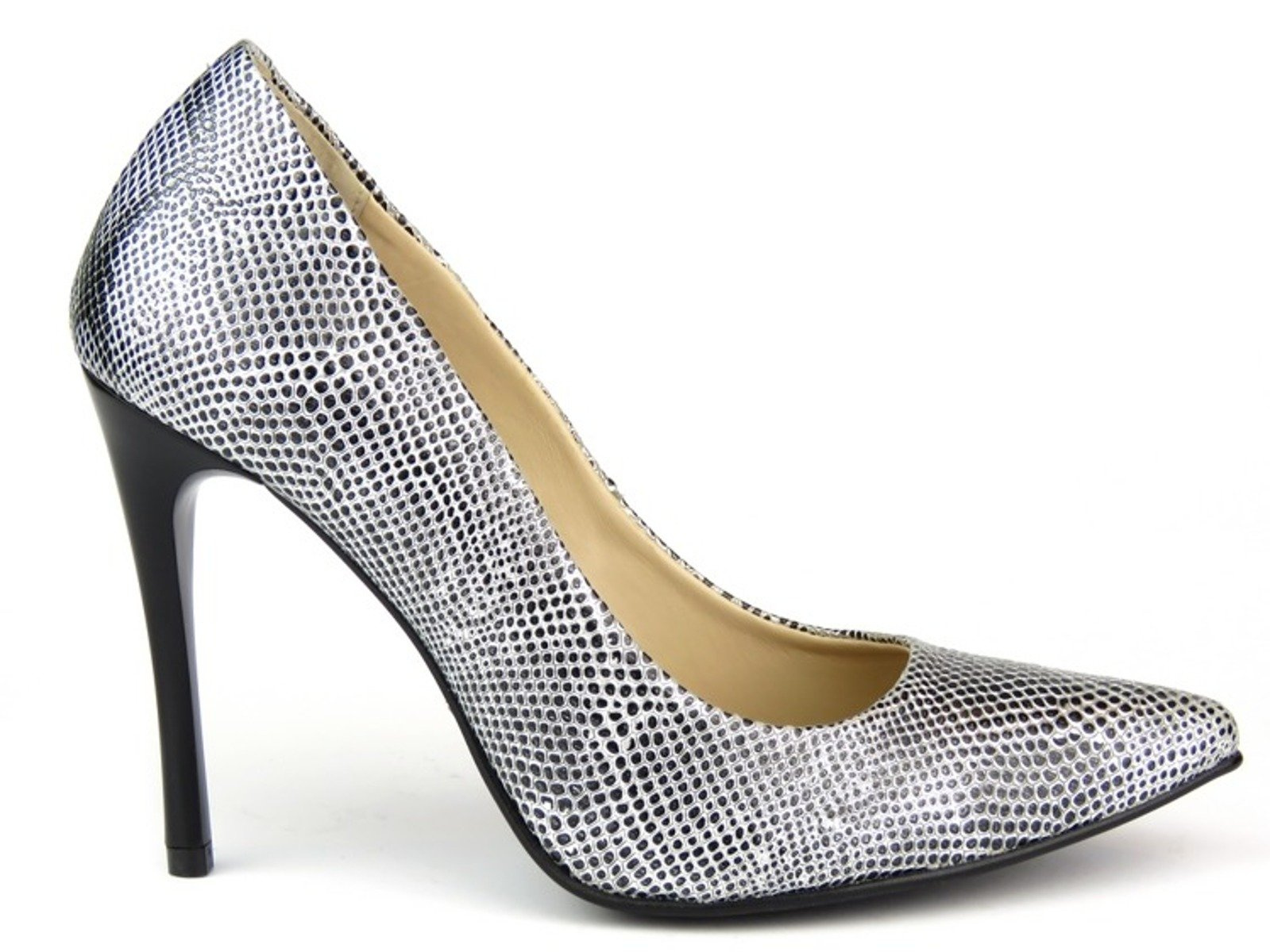 Szpilki damskie renomowanej polskiej marki Kati zostały wykonane z wysokiej jakości skóry naturalnej licowej. Wnętrze i wkładka z miękkiej skóry naturalnej zapewniają odpowiedni komfort dla stóp. 10-centymetrowy obcas na szpilce wysmukla sylwetkę. Oryginalna skórzana cholewka imitująca wężową skórę każdej stylizacji doda uroku i charakteru.