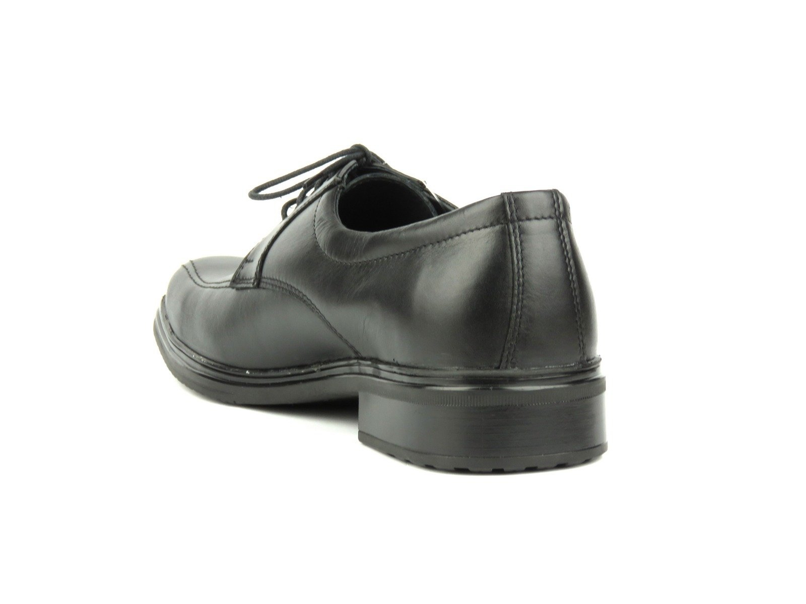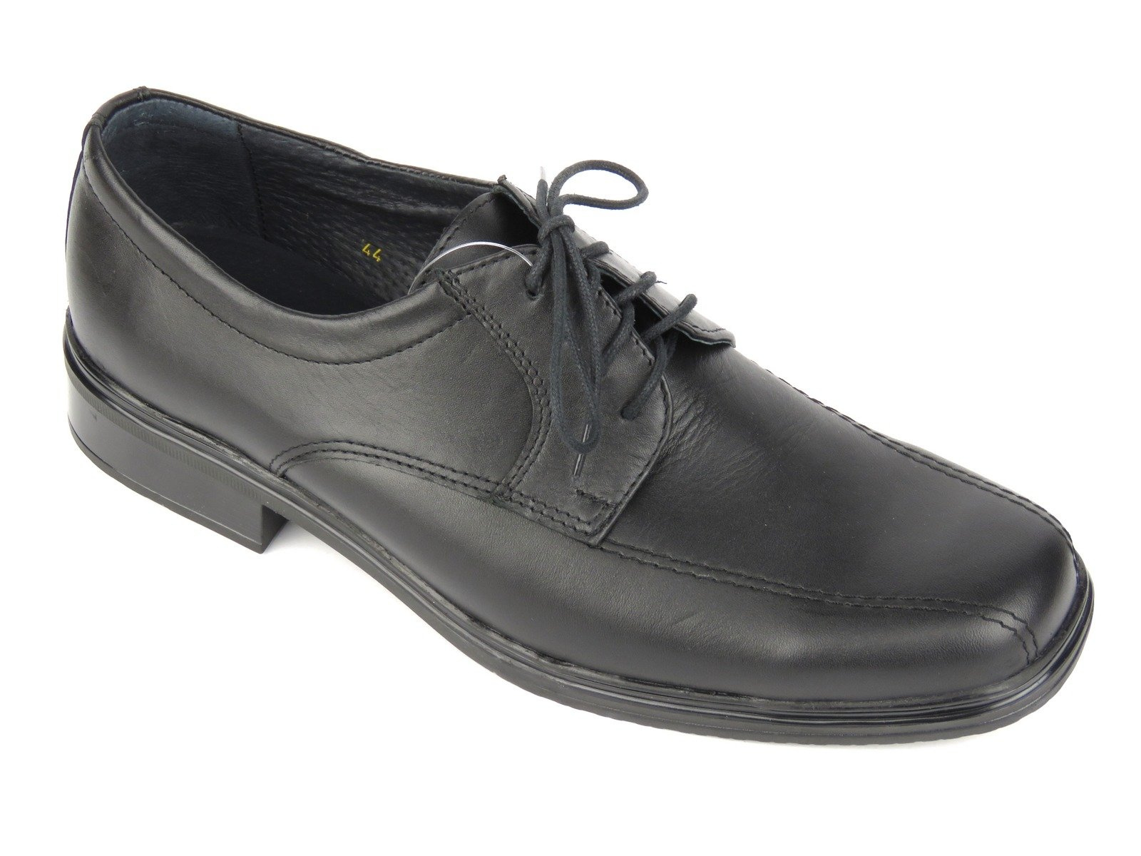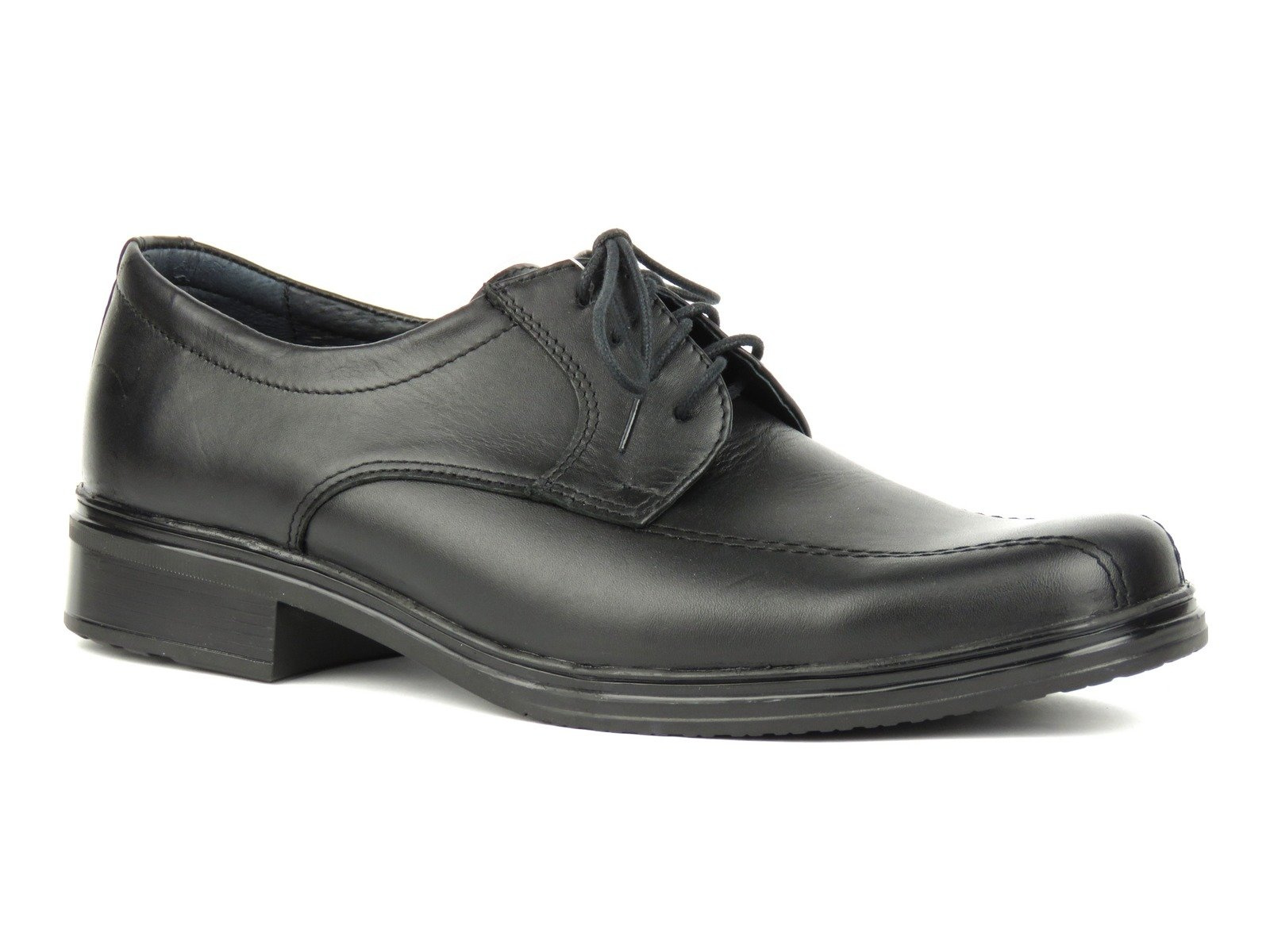 Półbuty męskie marki Babris zostały wykonane ze skóry naturalnej licowej w kolorze czarnym. Miękka, skórzana wyściółka zapewnia odpowiedni komfort dla stóp. Model osadzono na kilkucentymetrowym obcasie, który dodaje wysokości. Czarne, klasyczne półbuty sprawdzą się na wiele okazji.