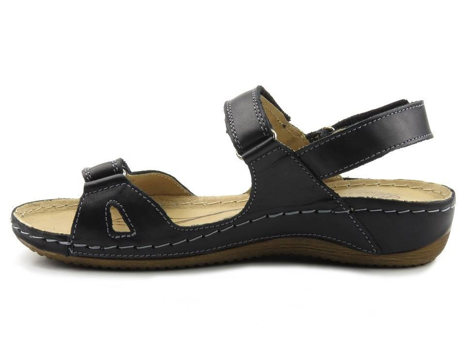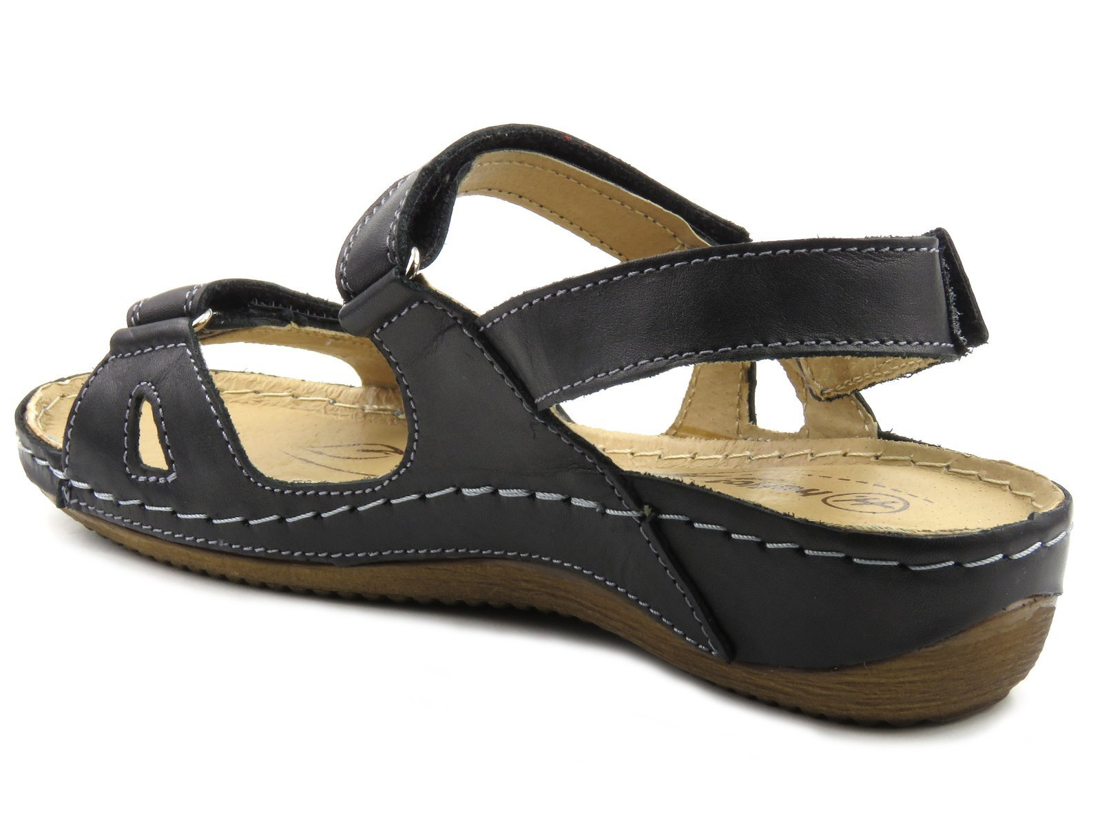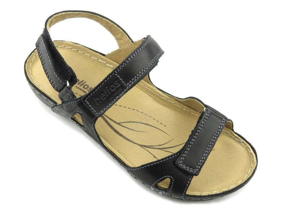 Sandały damskie cenionej polskiej marki Helios zostały wykonane z wysokiej jakości skóry naturalnej licowej. Miękka, skórzana wyściółka zapewnia wysoki komfort dla stóp. Pod wkładką znajduje się miękka gąbka SOFT. Dzięki wygodnym zapięciom na rzepy, obuwie można dopasować do różnej tęgości stopy. Podeszwa z PU jest lekka i elastyczna, dzięki czemu nie męczy stóp i łatwo się zgina.