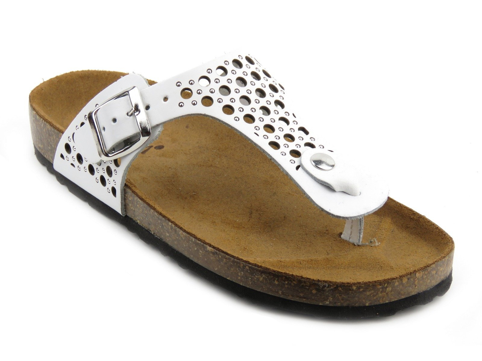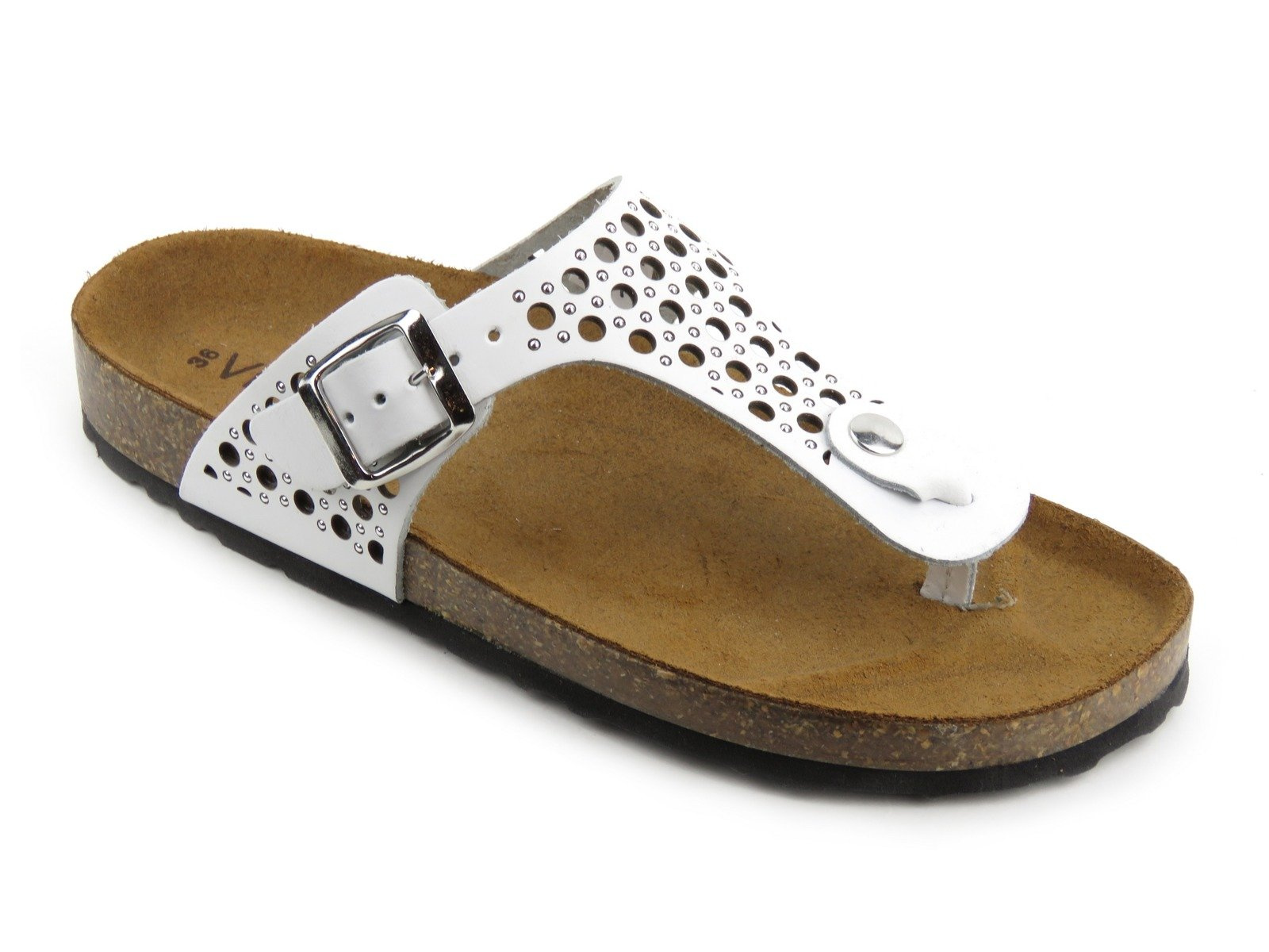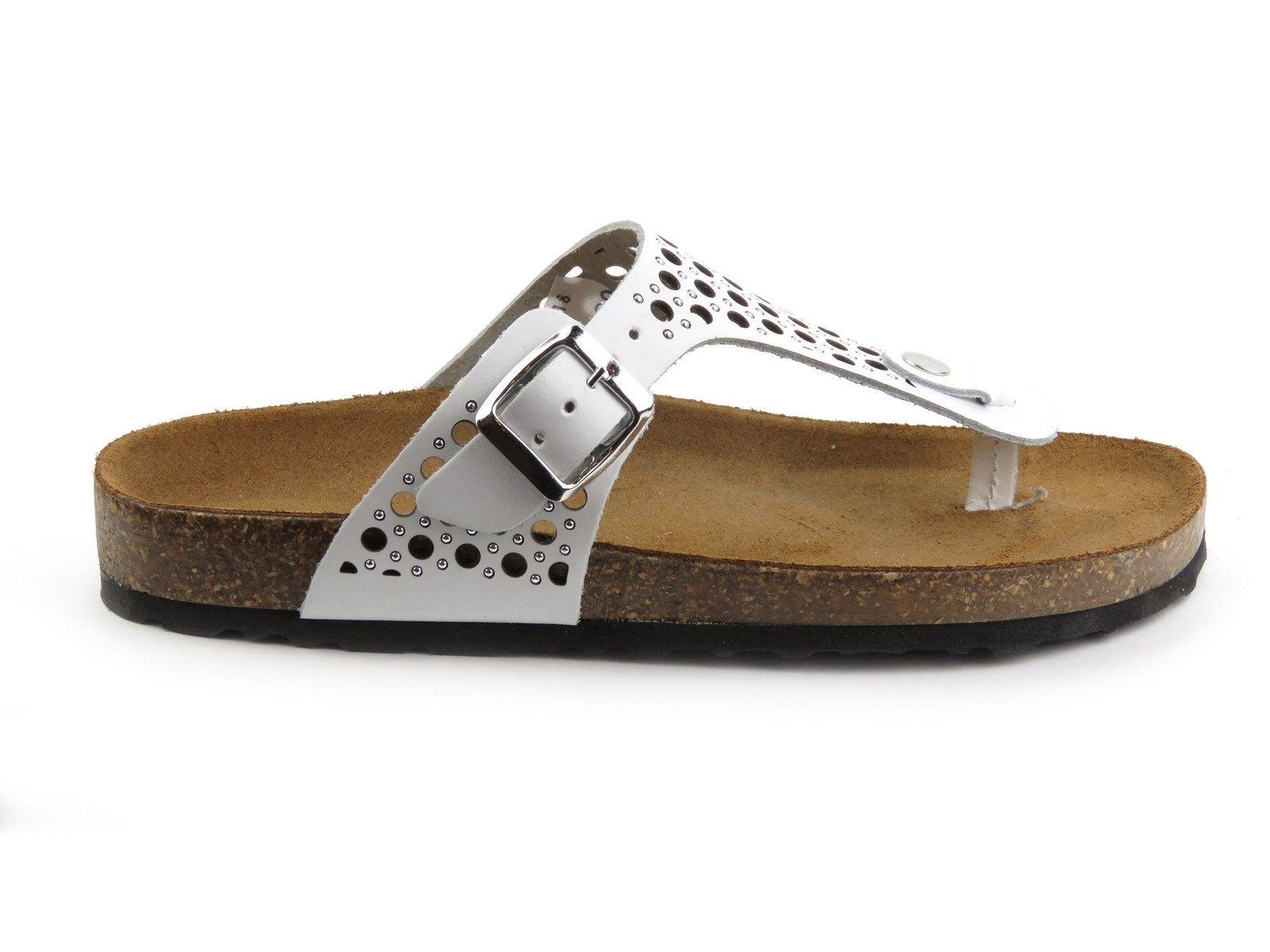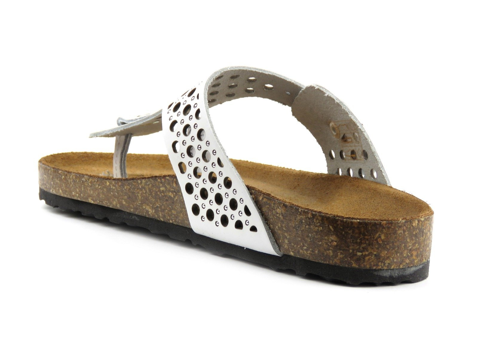 Zostały wykonane z wysokiej jakości skóry naturalnej licowej - miękkiej i przyjemnej w dotyku. Modny fason oraz kompozycja bieli i podeszwy imitującej korek tworzą śliczne połączenie. Dzięki regulowanej klamrze, obuwie można dopasować do różnej tęgości stopy.
