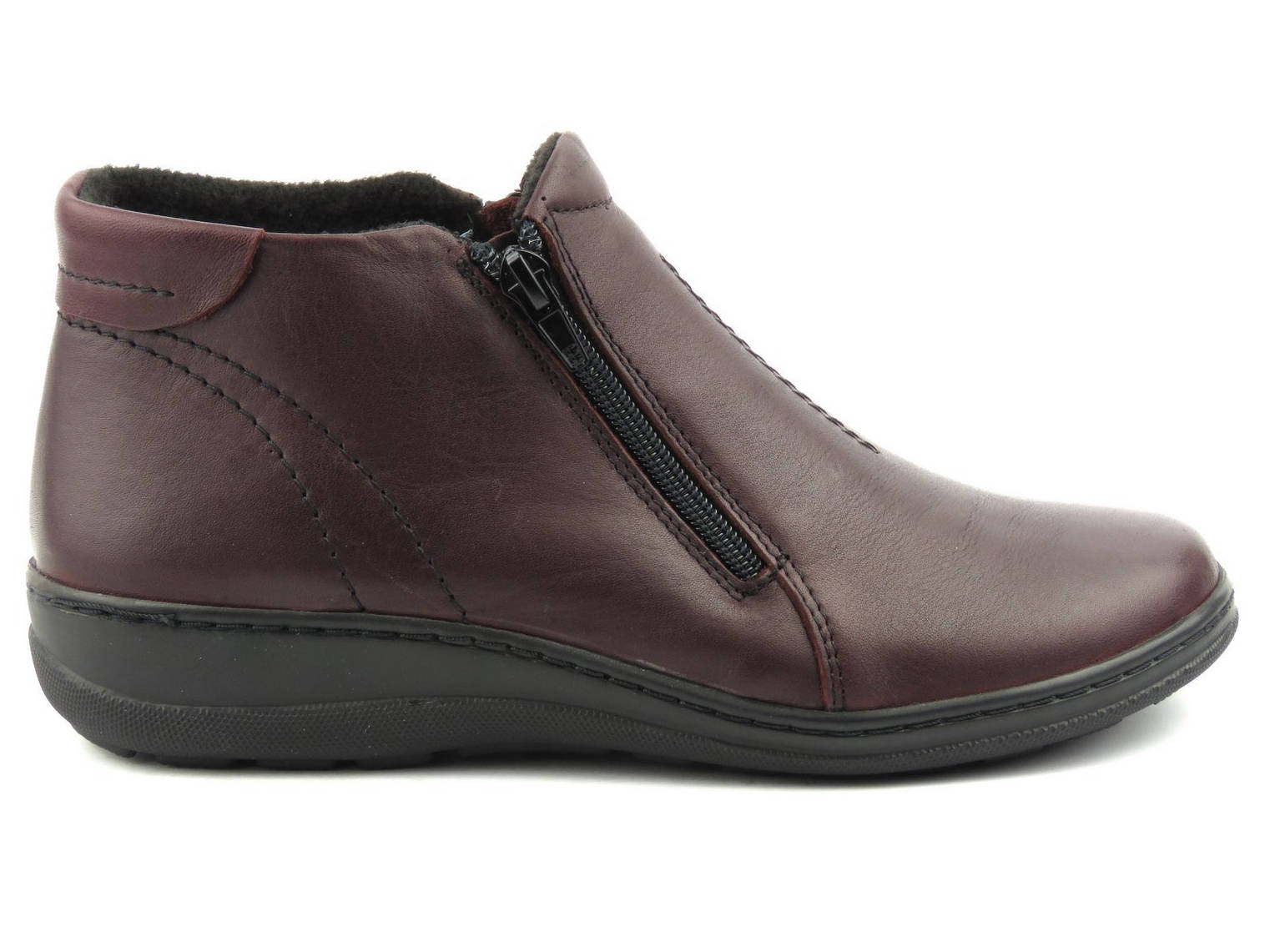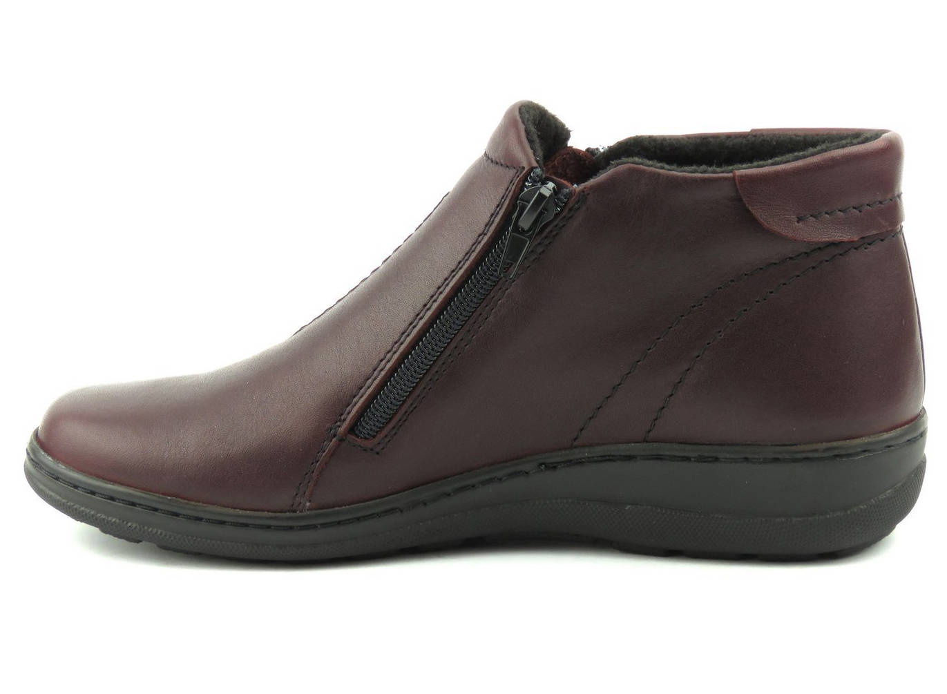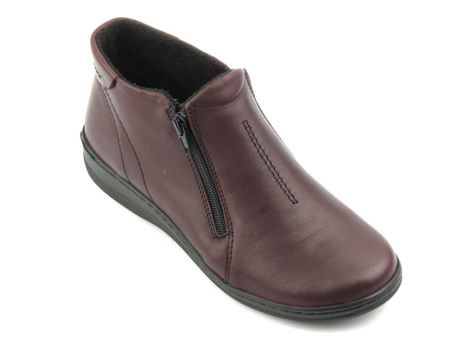 Lekkie i wygodne botki damskie ze skóry naturalnej - HELIOS KOMFORT 642, wiśniowe