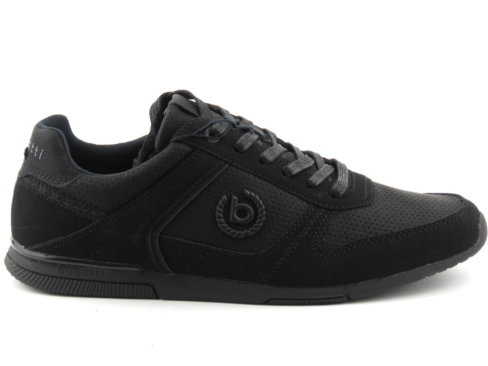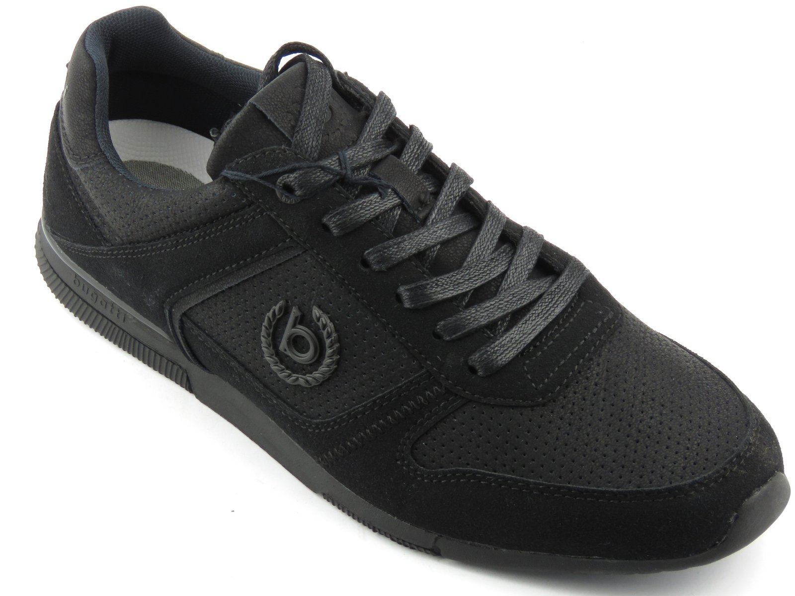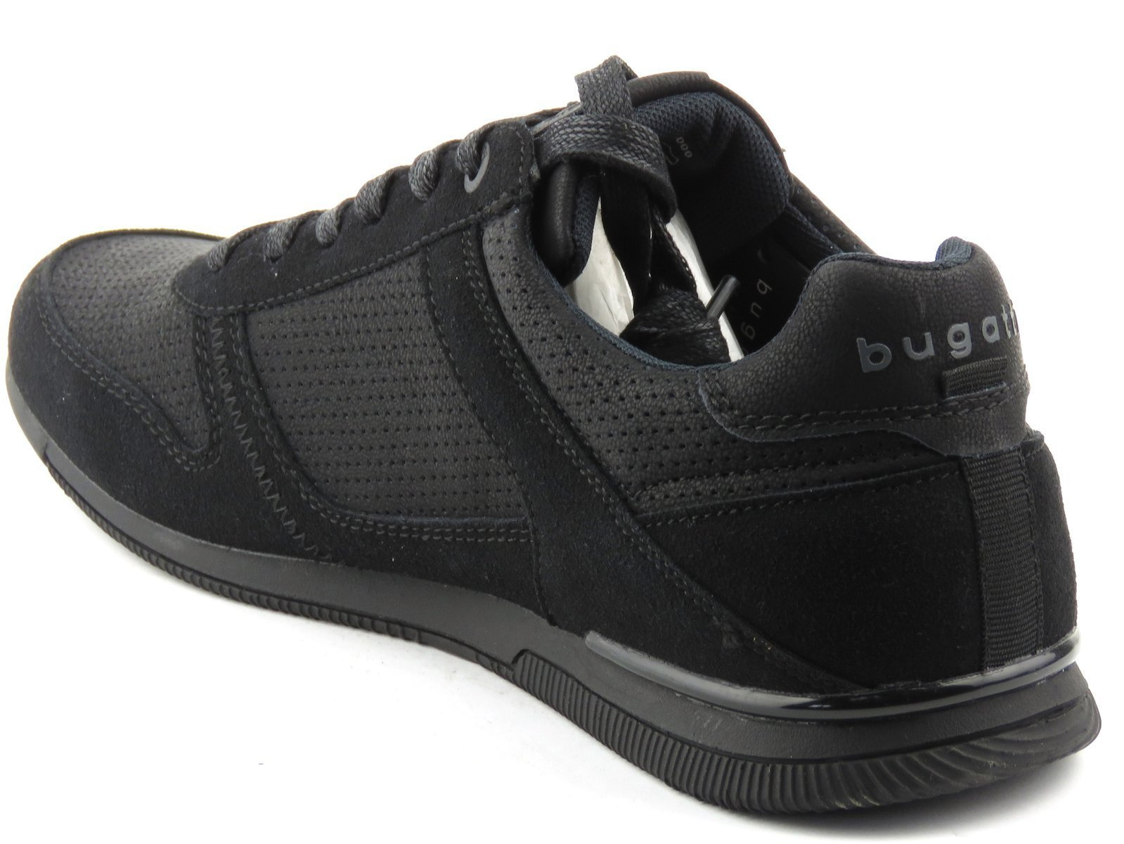 Buty męskie sportowe renomowanej marki Bugatti zostały wykonane z wysokiej jakości skóry ekologicznej w uniwersalnym, czarnym kolorze. Regulowane, wysokojakościowe sznurowadła pozwalają na dopasowanie obuwia do stopy. Podeszwa z gumy jest odporna na ścieranie i dobrze trzyma się podłoża. Cholewkę zdobi subtelne logo marki.