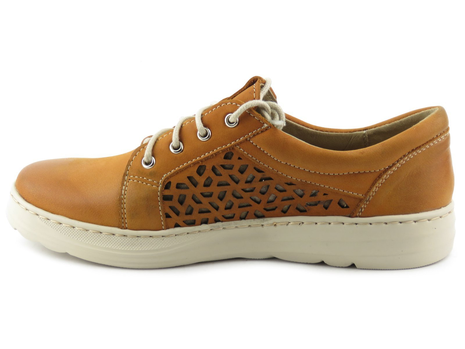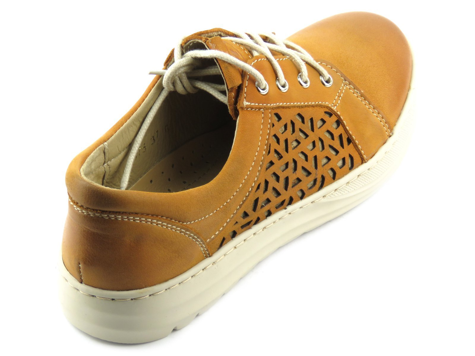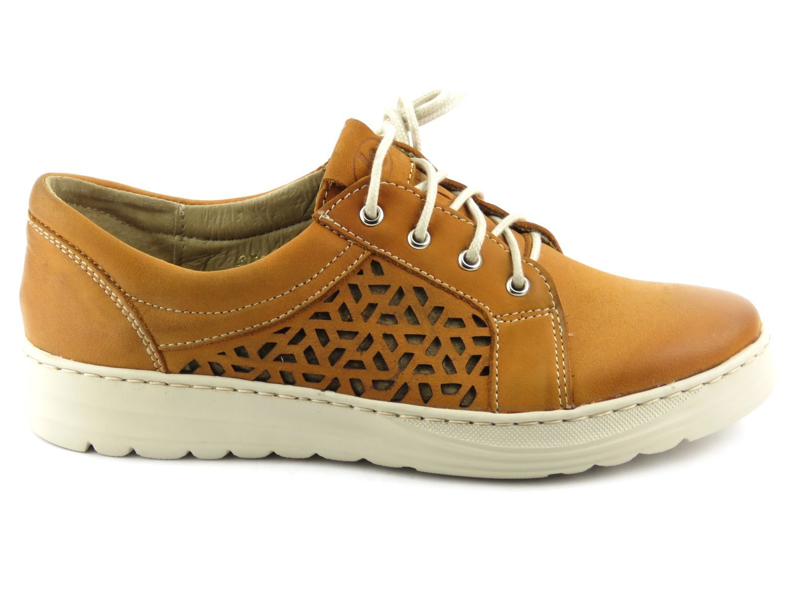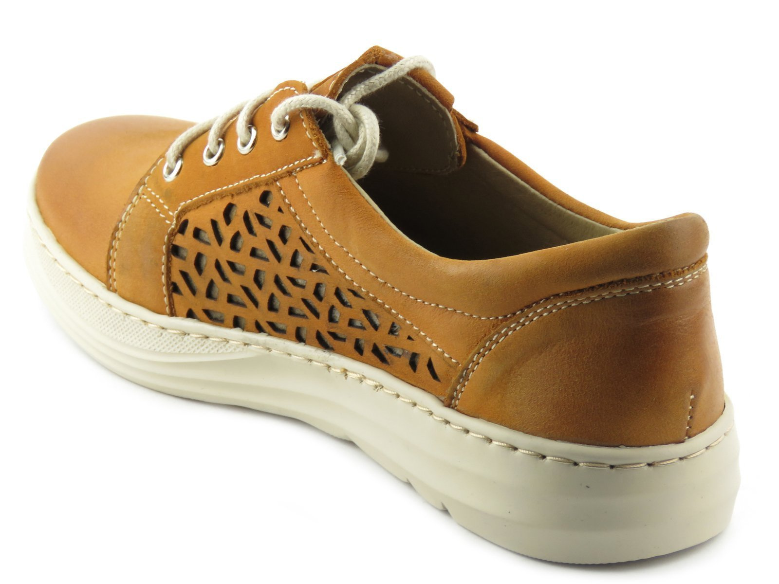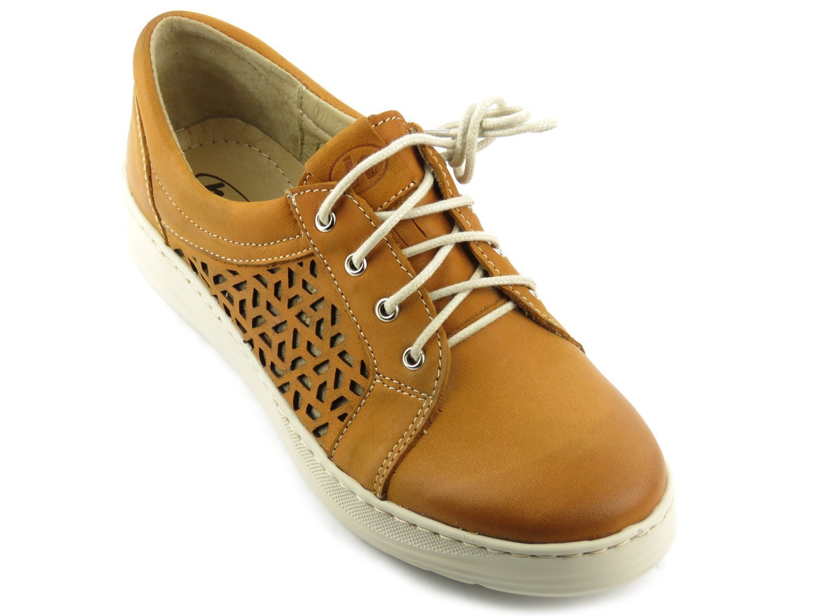 Wygodne półbuty damskie z ażurowym wzorem - Helios Komfort 375, jasnobrązowe