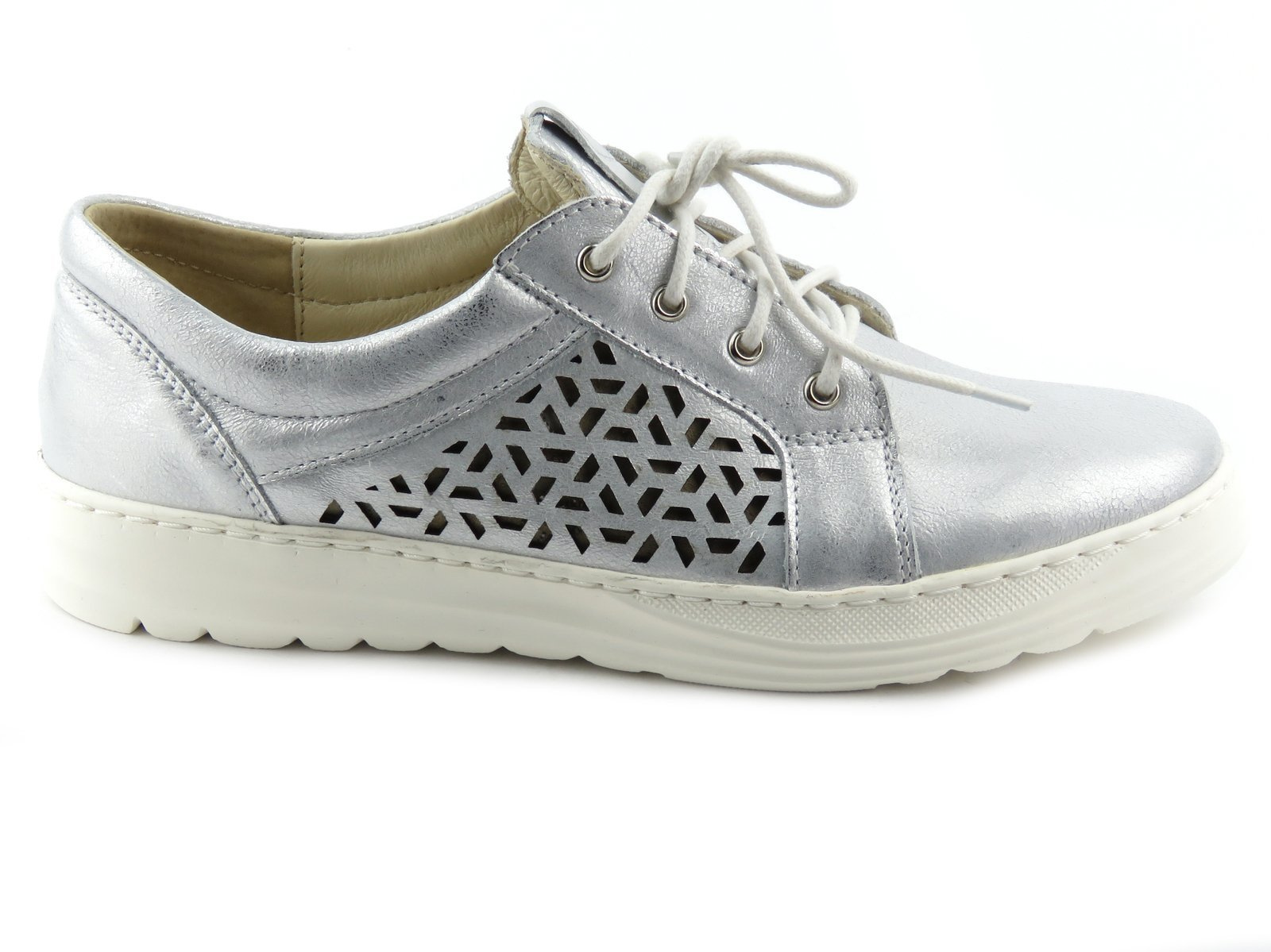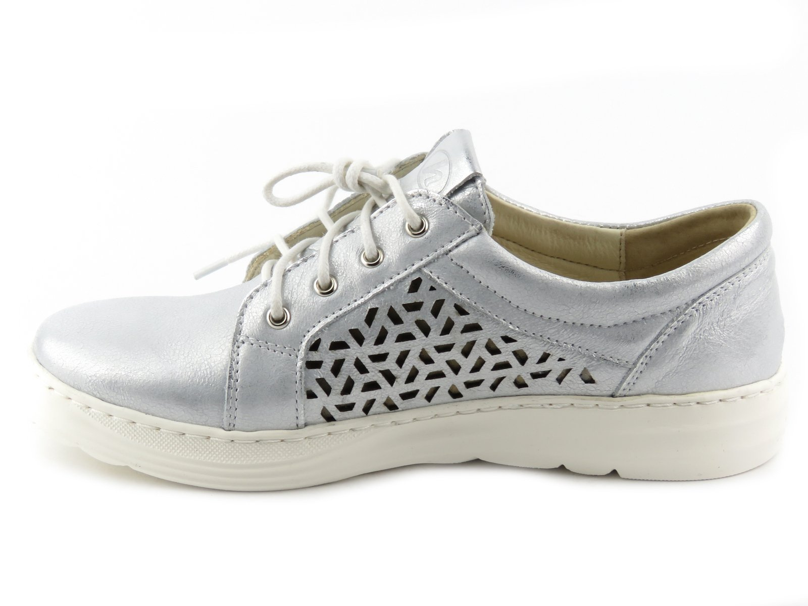 Wygodne półbuty damskie z ażurowym wzorem - Helios Komfort 375, srebrne