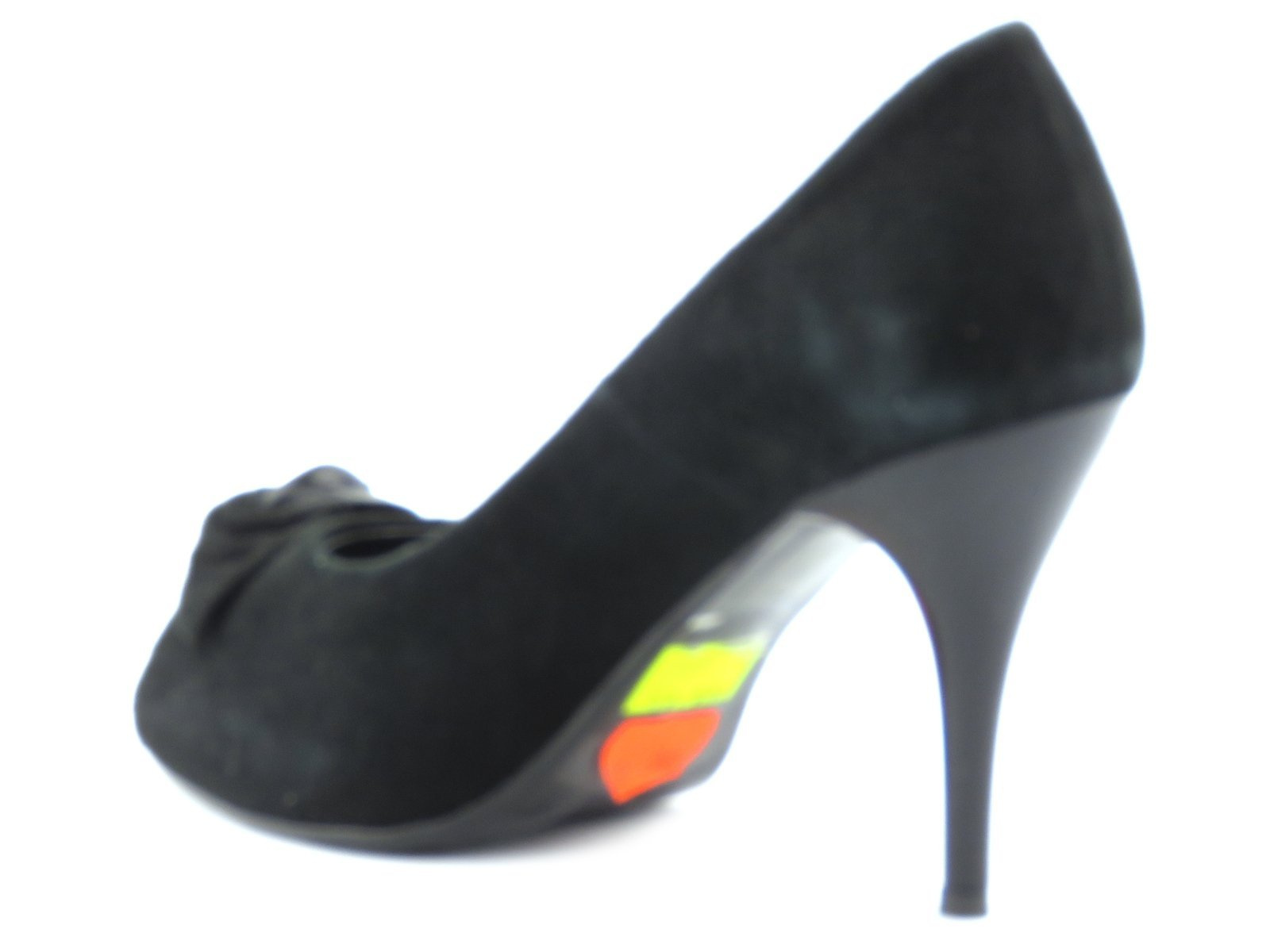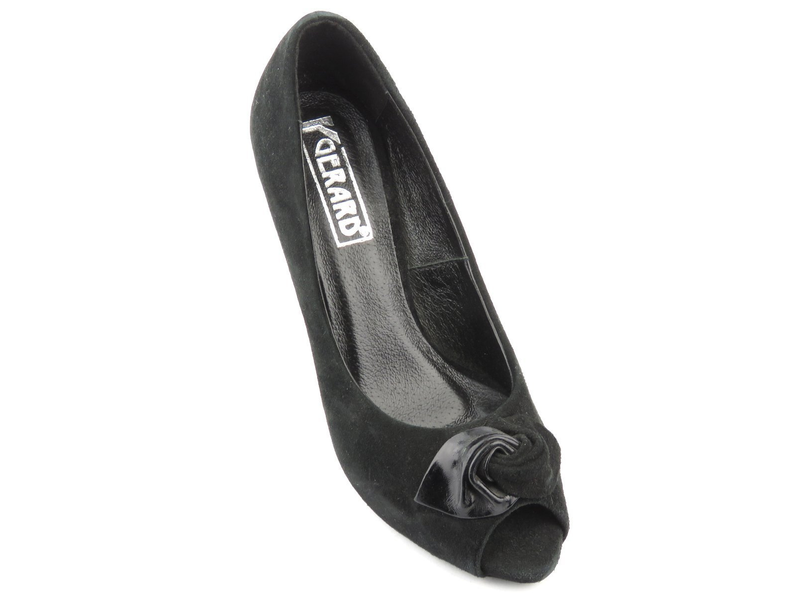 Czółenka cenionej marki Gerard wykonane zostały ze skóry naturalnej w kolorze czarnym. Skórzana wyściółka zapewnia odpowiedni komfort dla stóp. Wkładka jest podbita pianką. Obcas na szpilce 11 cm ślicznie wysmukla sylwetkę.. Nosek został urozmaicony delikatną ozdobą.