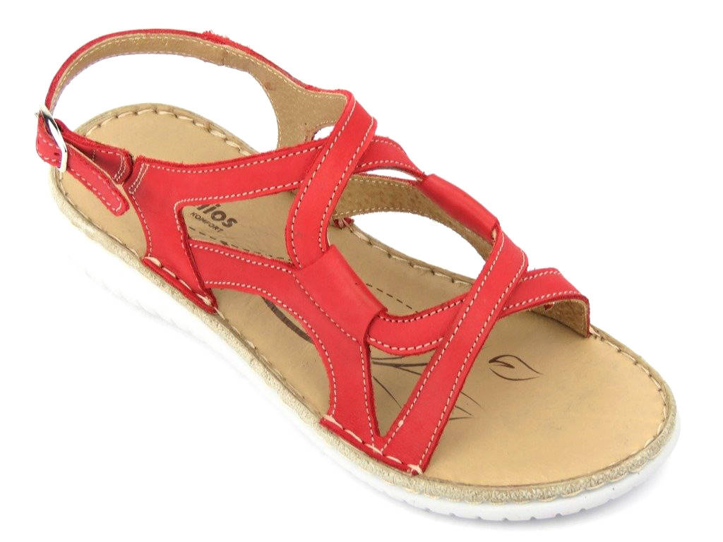 Wygodne sandały damskie z zakręconą cholewką - HELIOS Komfort 283, czerwone