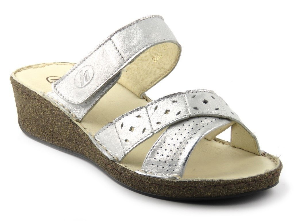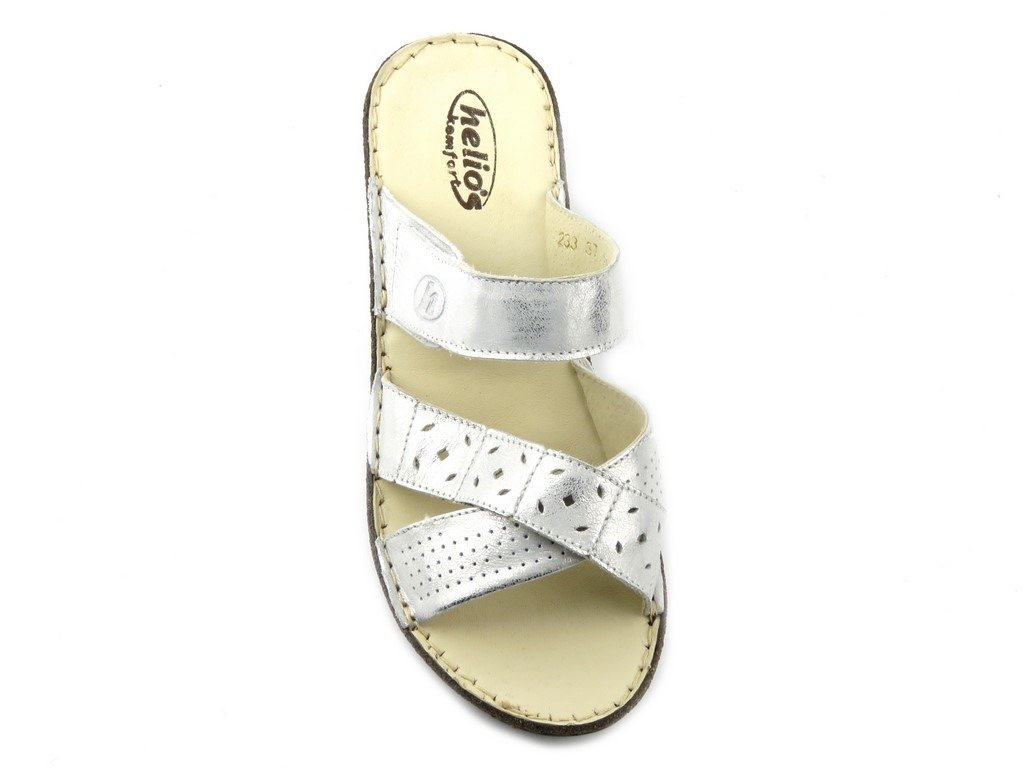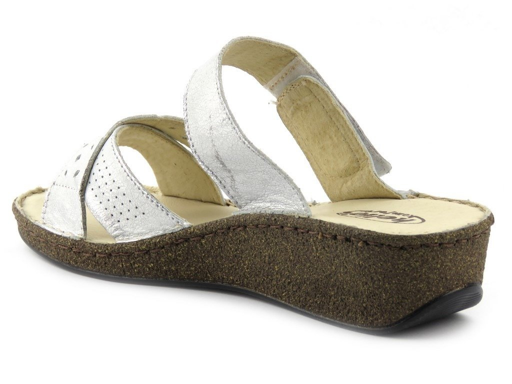 Skórzane klapki damskie z ozdobną cholewką - HELIOS Komfort 233, srebrne