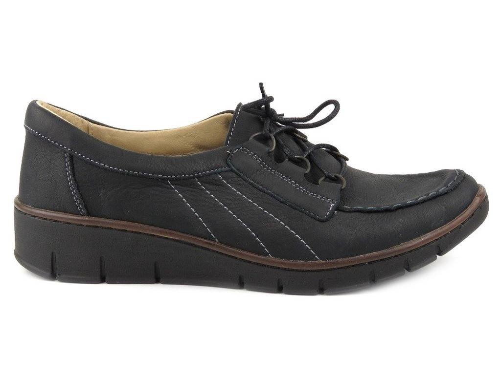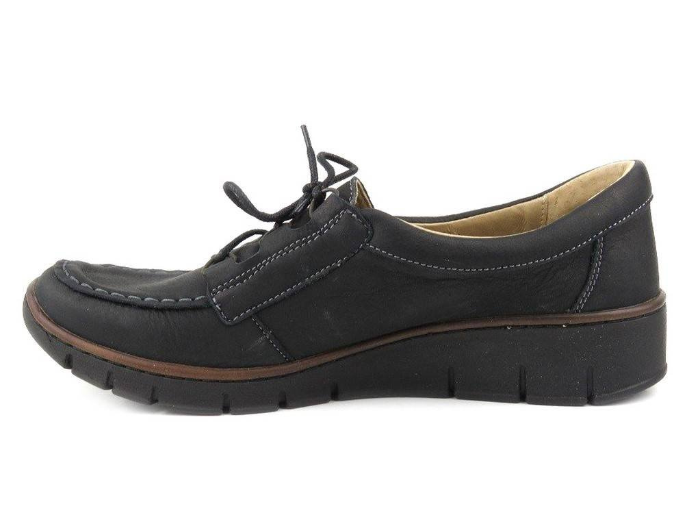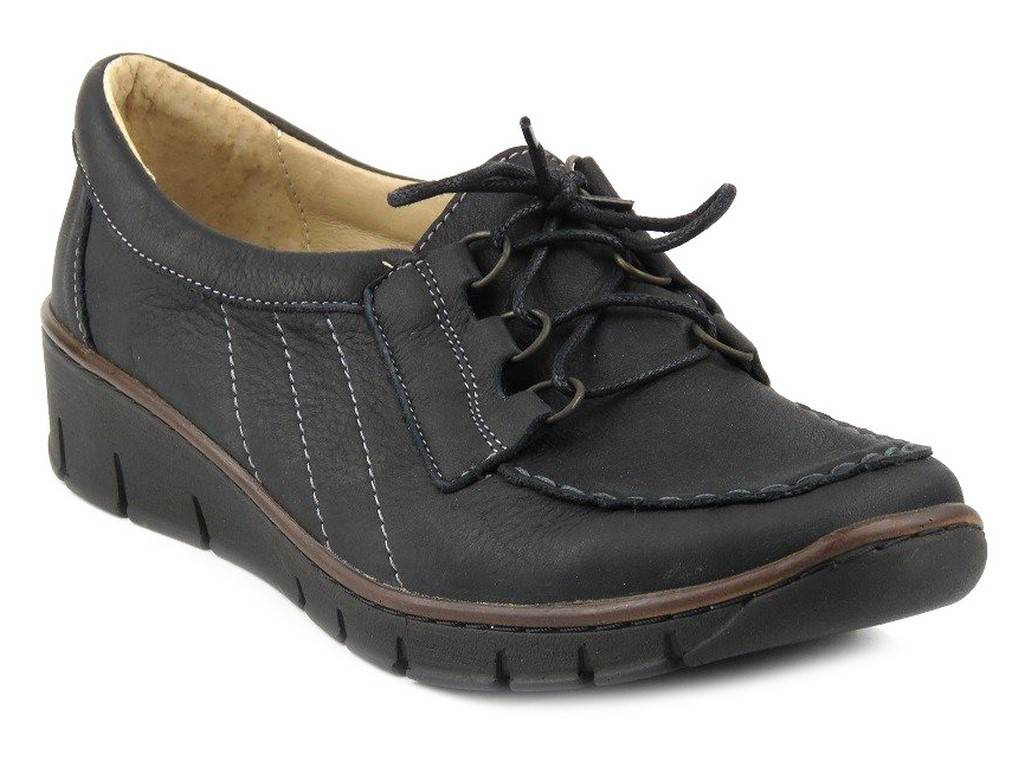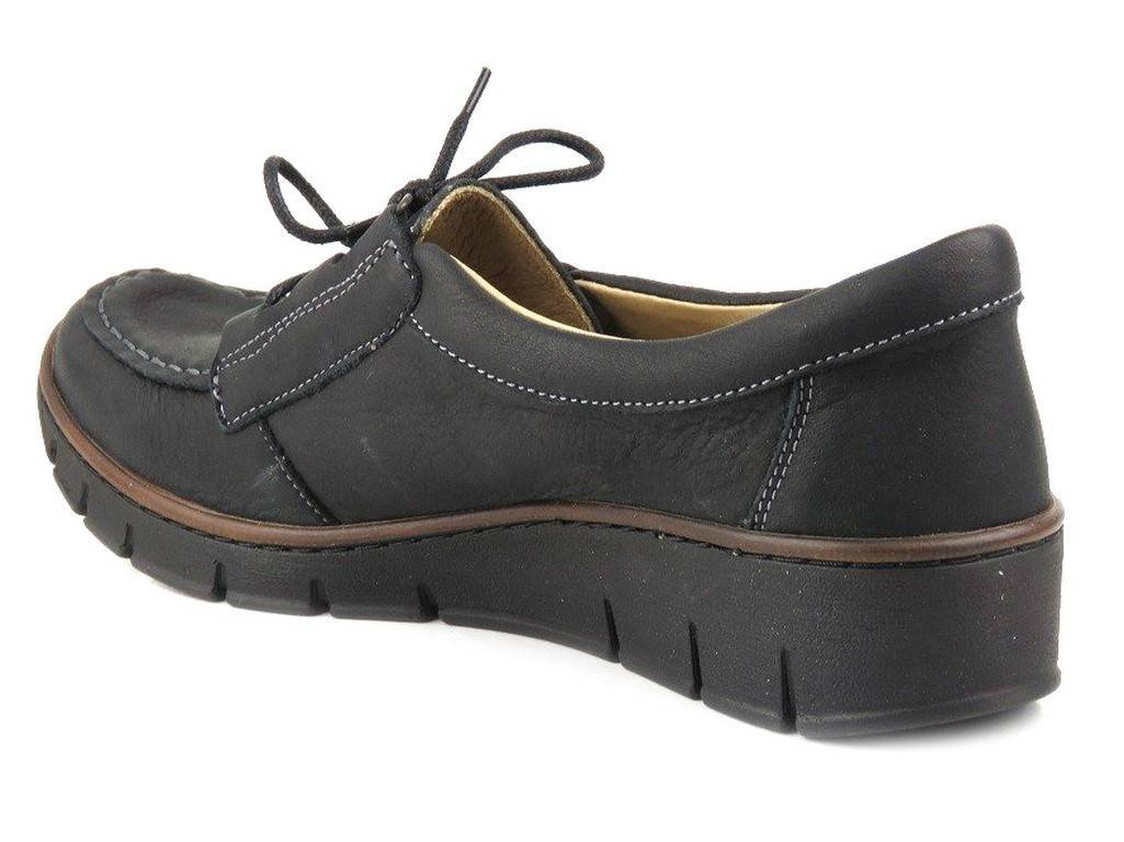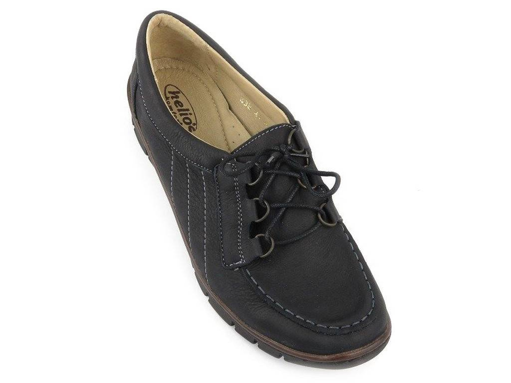 Skórzane półbuty damskie z wiązaniem - HELIOS Komfort 338, czarne