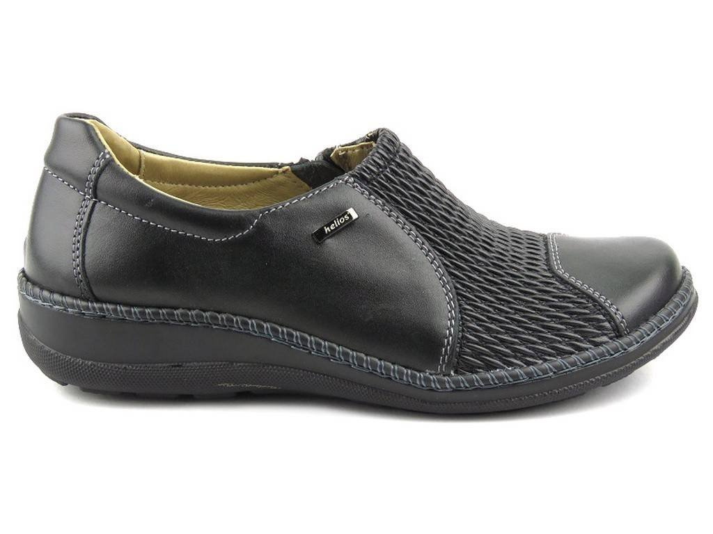Półbuty damskie cenionej polskiej marki Helios Komfort zostały wykonane z wysokiej jakości skóry naturalnej licowej. Miękka, skórzana wyściółka zapewnia wysoki komfort dla stóp. Pod profilowaną wkładką znajduje się miękka gąbka SOFT. Część cholewki wykonana jest z elastycznego materiału - stretchu, dzięki czemu dobrze sprawdza się w przypadku stóp wrażliwych, np. z haluksami. Suwak pozwala na szybkie i wygodne zakładanie obuwia. Lekka i elastyczna podeszwa z PU zapewnia naturalne wygięcie i odpowiednie ułożenie stopy w trakcie chodzenia.