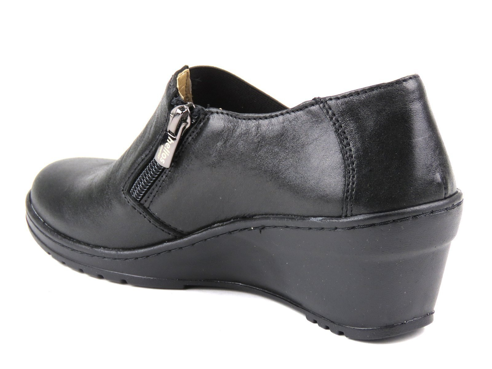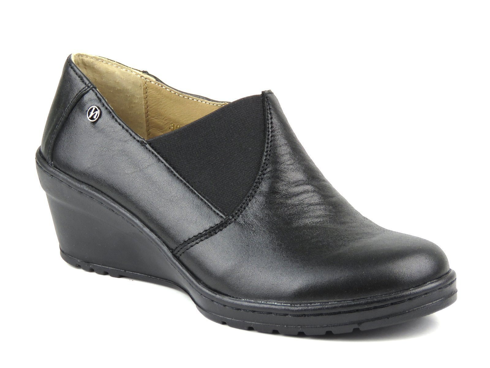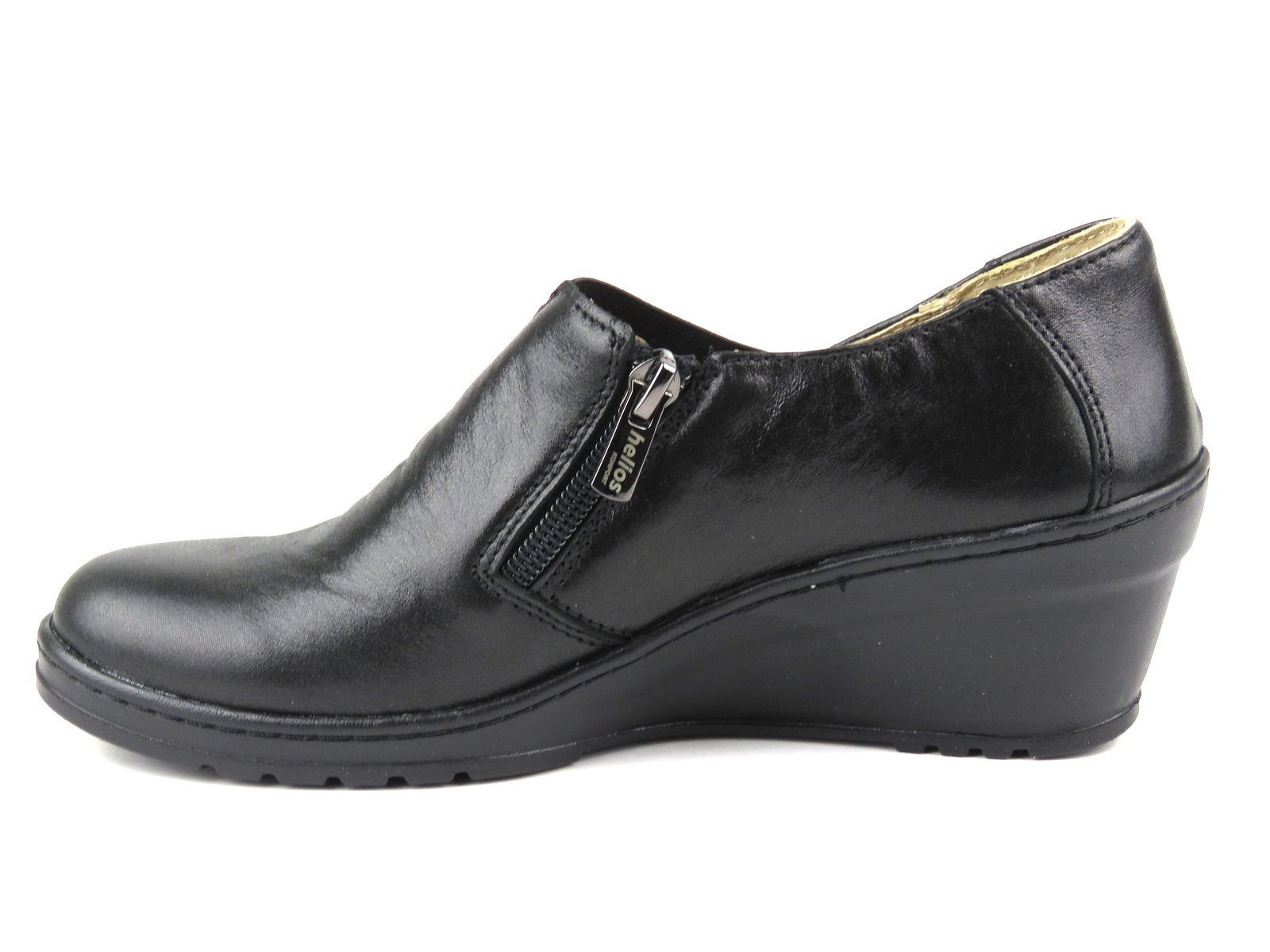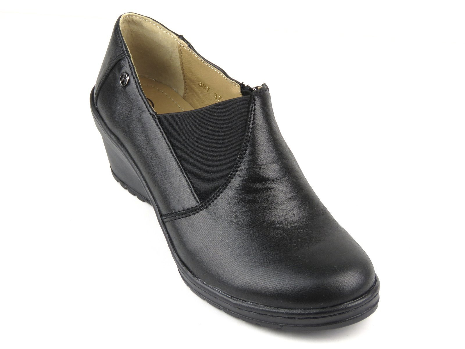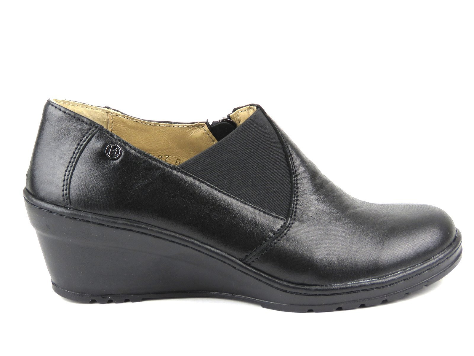 Skórzane półbuty damskie na koturnie - Helios Komfort 387, czarne
