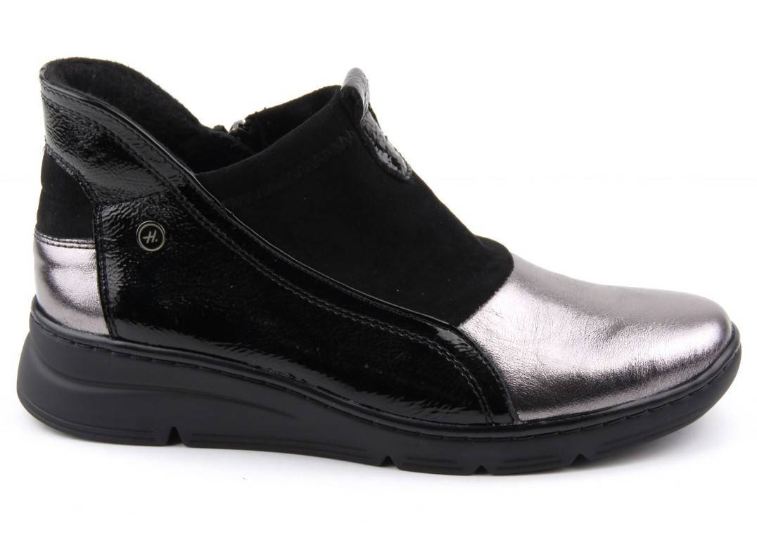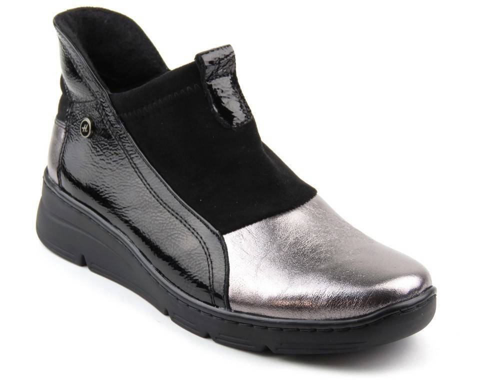 Skórzane botki damskie HELIOS Komfort 509, srebrne