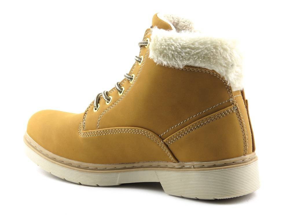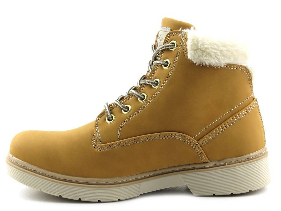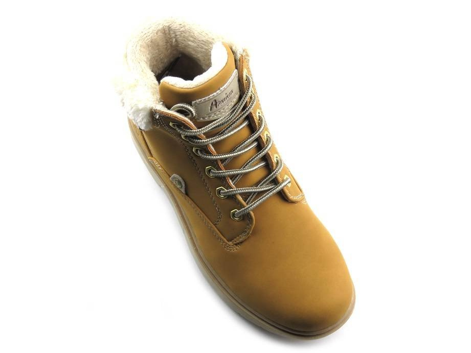 Trapery damskie marki American Club zostały wykonane ze skóry ekologicznej nubukowej. Wnętrze jest ocieplone grubym polarem obuwniczym. Dzięki regulacji sznurowadeł, model można dopasować do różnej tęgości stopy. Gruba podeszwa zapewnia dobrą izolację od podłoża oraz ma właściwości antypoślizgowe.