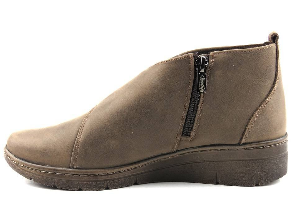 Botki damskie cenionej polskiej marki Helios Komfort zostały wykonane z wysokiej jakości skóry naturalnej licowej. Wnętrze jest ocieplone polarem obuwniczym. Zamek błyskawiczny pozwala na szybkie i wygodne zakładanie obuwia. Dzięki elastycznemu paskowi, model dopasowuje się do stopy. Gruba podeszwa zapewnia dobrą izolację od podłoża. Oryginalna cholewka nadaje butom uroku.