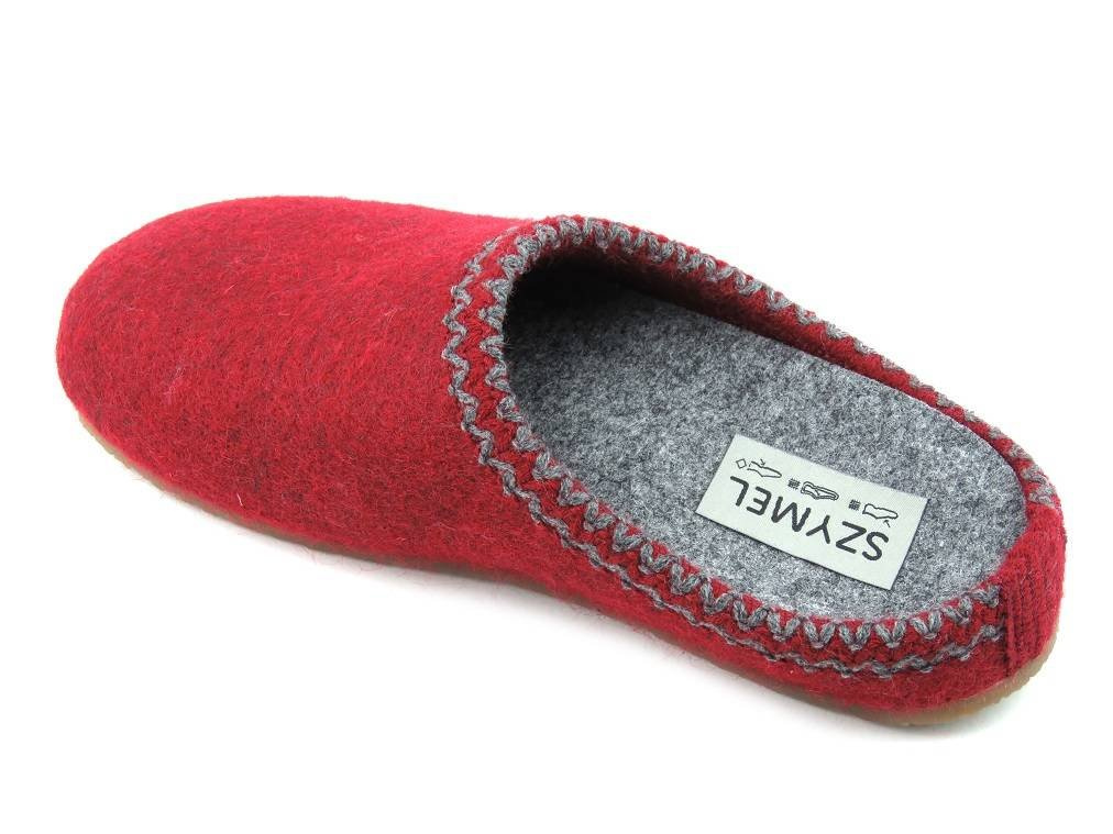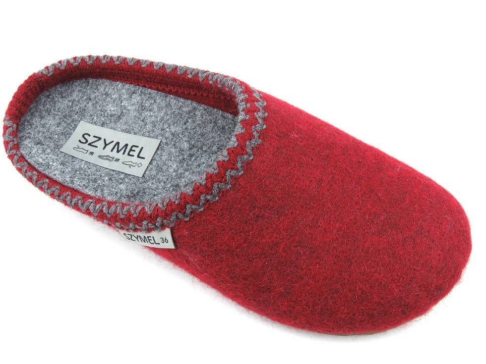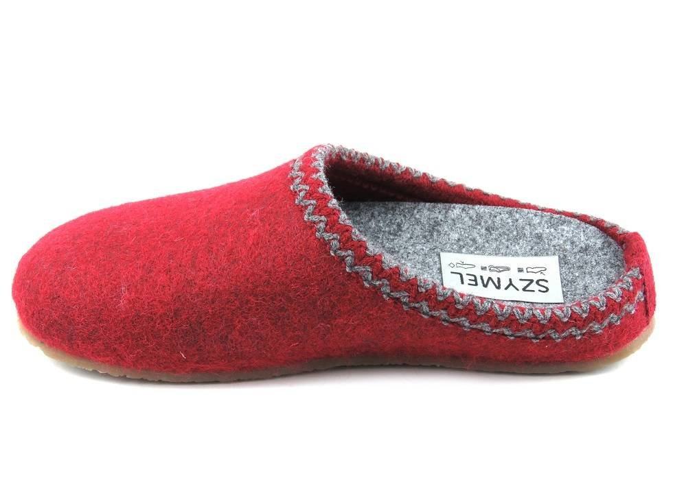 Kapcie damskie marki Szymel zostały wykonane z naturalnego filcu. Pod wyjmowaną wkładką znajduje się gumowy klin o grubości jednego centymetra. Dzięki zastosowanym materiałom, kapcie oddychają i odprowadzają wilgoć. Cechuje je także lekkość - ważą około 200-300 gramów. Świetnie sprawdzą się do codziennego użytkowania czy na prezent.