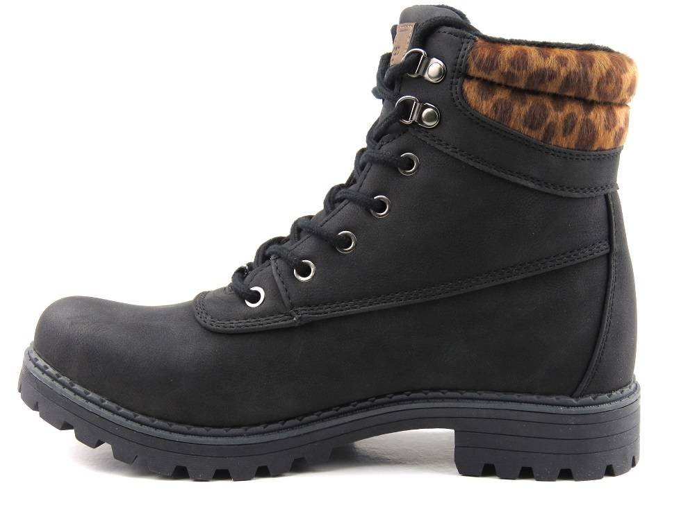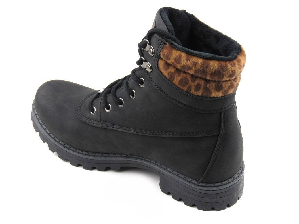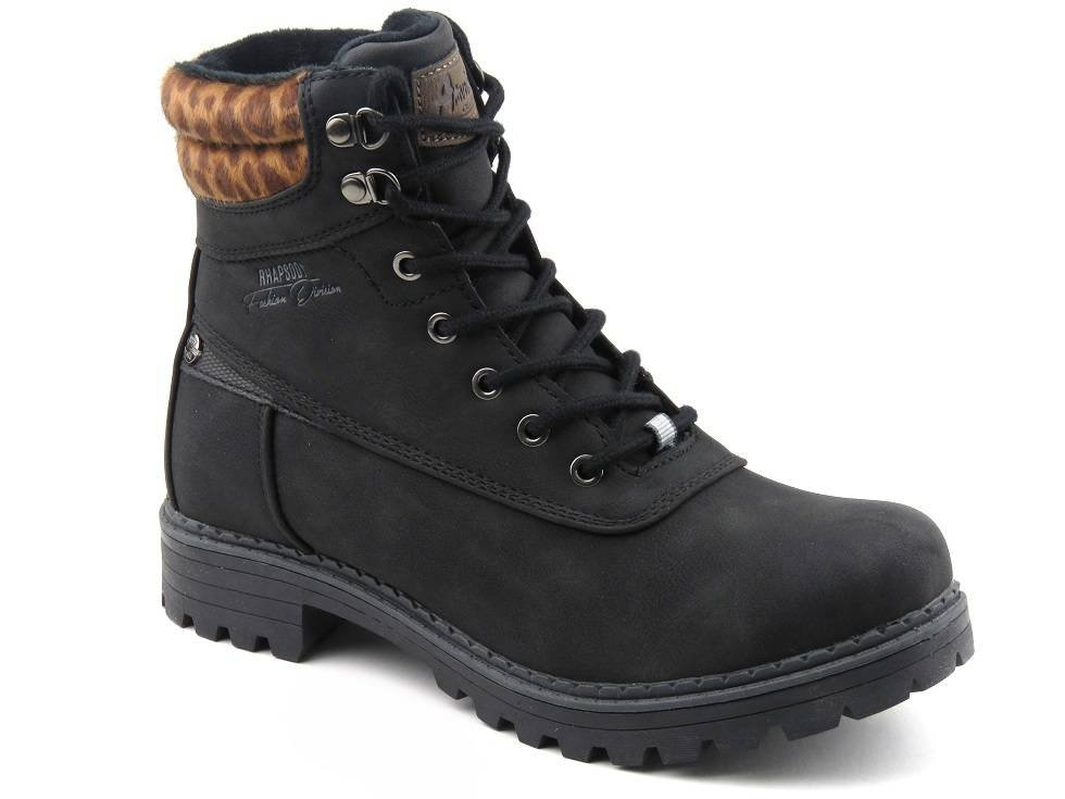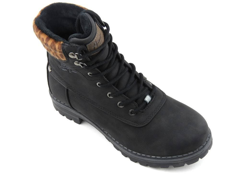 Trapery, botki damskie AMERICAN CLUB RH53/19, czarne z panterką