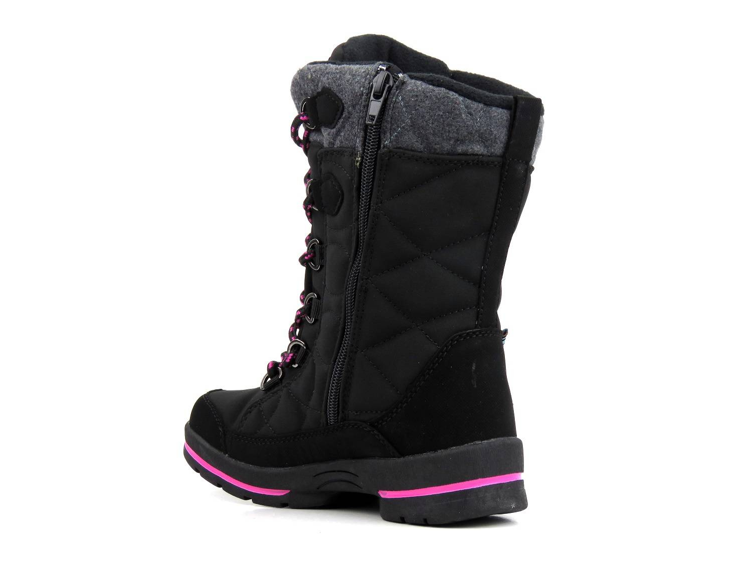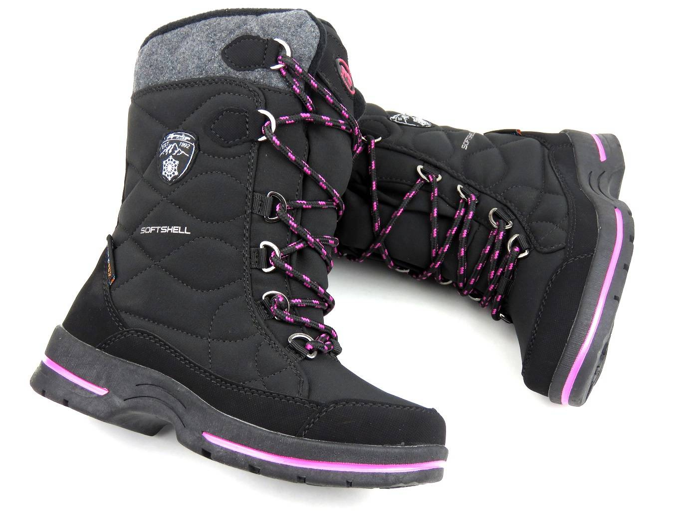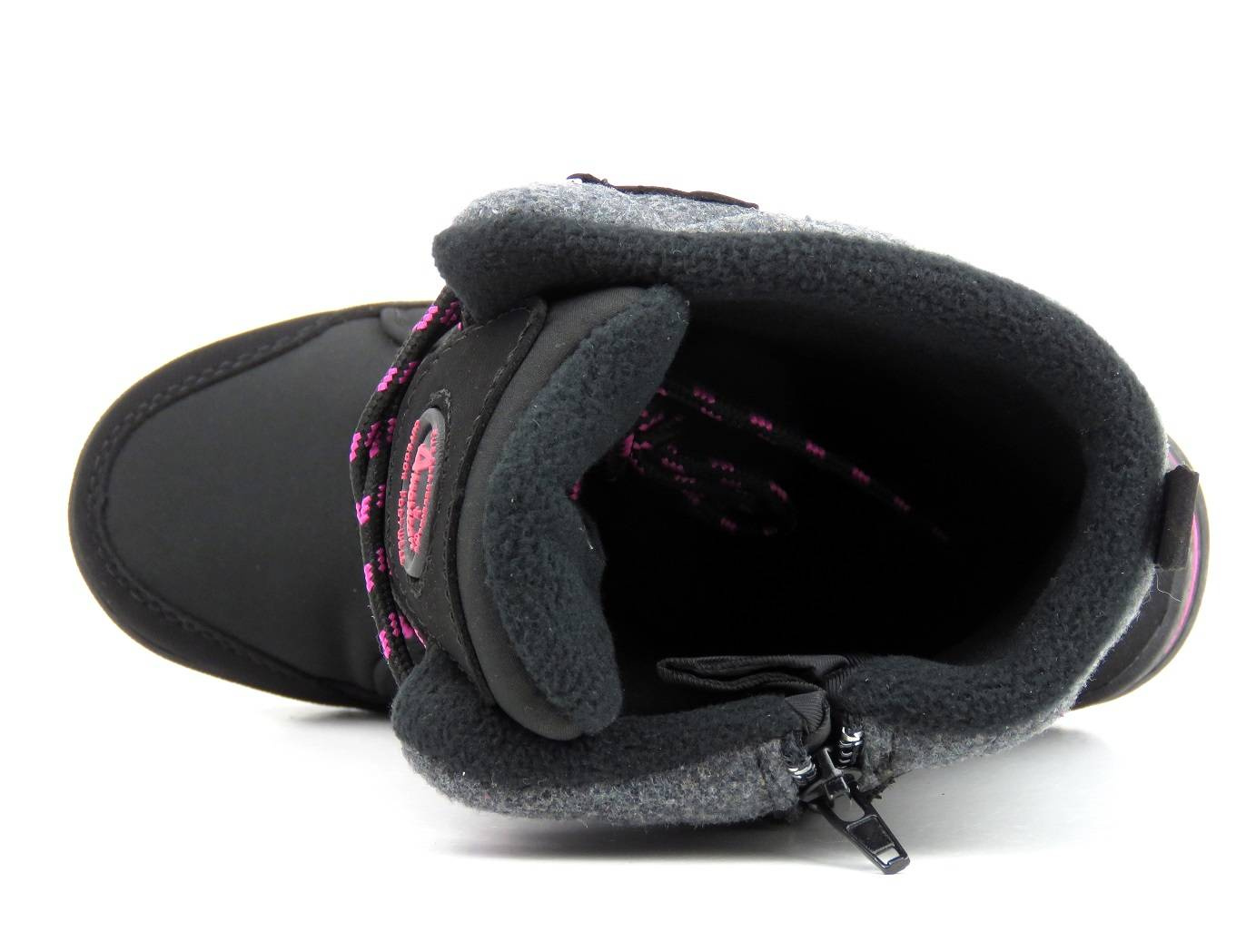 Cholewka śniegowców dziecięcych marki American Club została wykonana z wykorzystaniem zaawansowanego technologicznie materiału SOFTSHELL oraz membrany TRIPLETEX. SOFTSHELL tworzą specjalnie dobrane warstwy, które złączone ze sobą zwiększają ochronę przed wiatrem i deszczem, zarazem zapewniając właściwą wentylację wewnątrz buta. Zewnętrzne warstwy SOFTSEHELL zapewniają wiatroodporność i wyższą odporność na wodę, natomiast jej wewnętrze warstwy pozwalają utrzymać odpowiedni poziom ciepła w środku obuwia. Całość ma właściwości oddychające, a także jest miękka i elastyczna, dzięki czemu zapewnia wysoki komfort. Sznurowanie cholewki pozwala na jej dopasowanie, a wszyty w nią suwak umożliwia szybkie i wygodne zakładanie obuwia. Gruba podeszwa zapewnia dobrą przyczepność do podłoża i stabilność chodzenia.