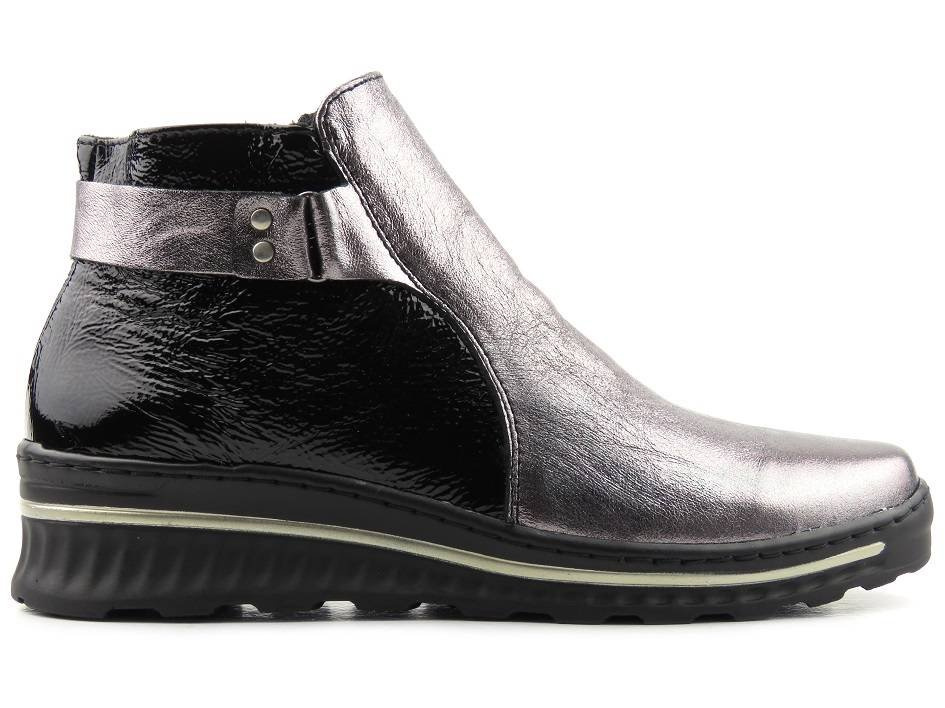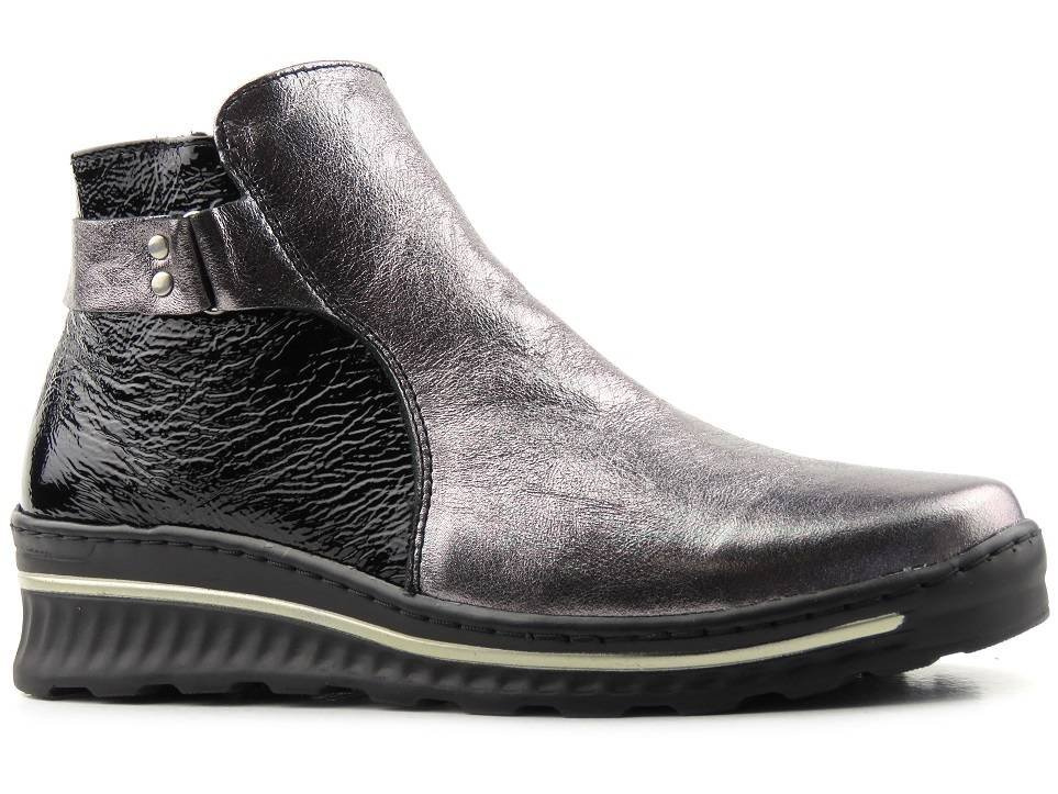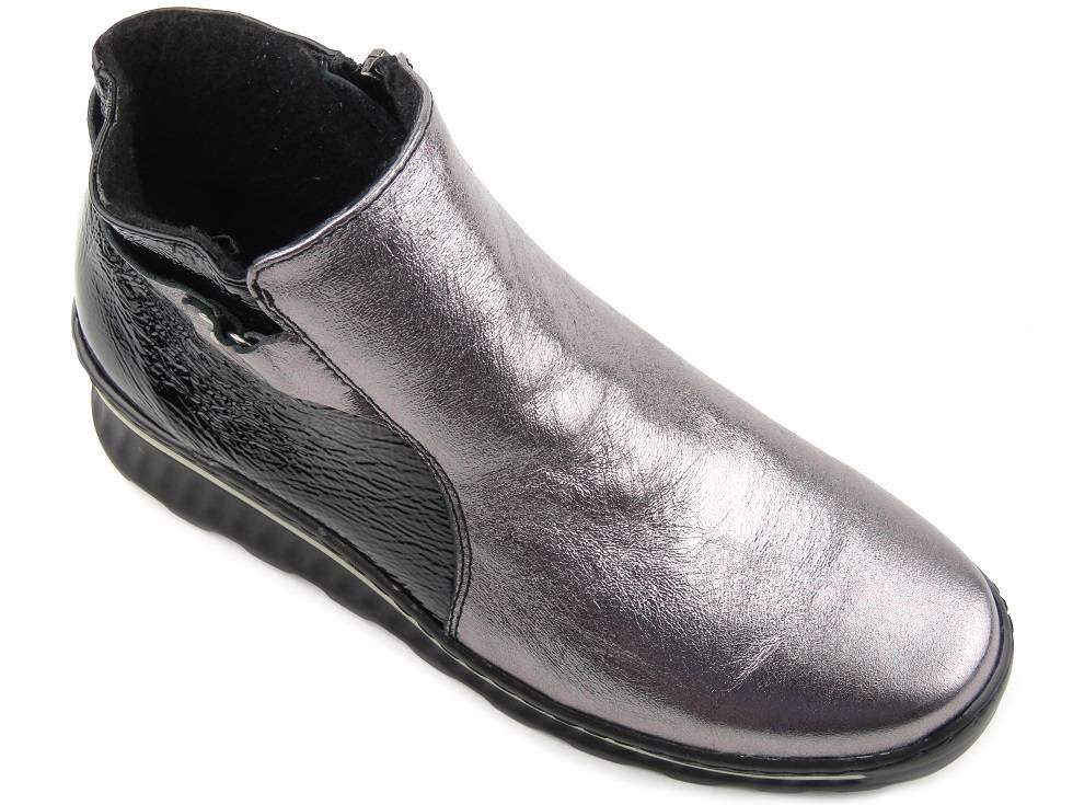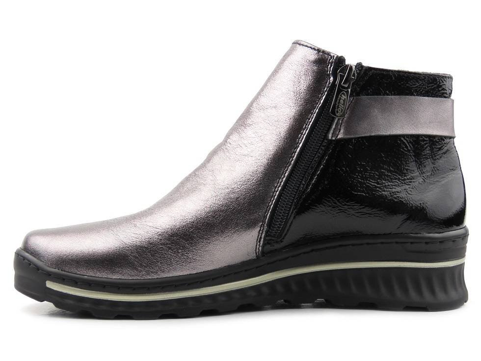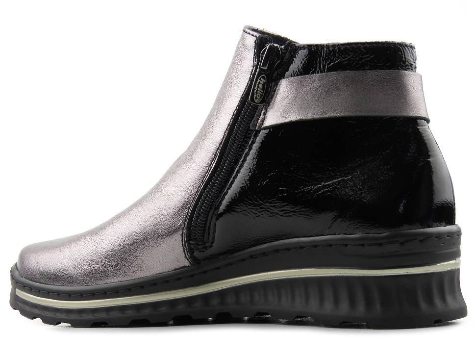 Skórzane botki damskie polskiej marki HELIOS Komfort 508, srebrne