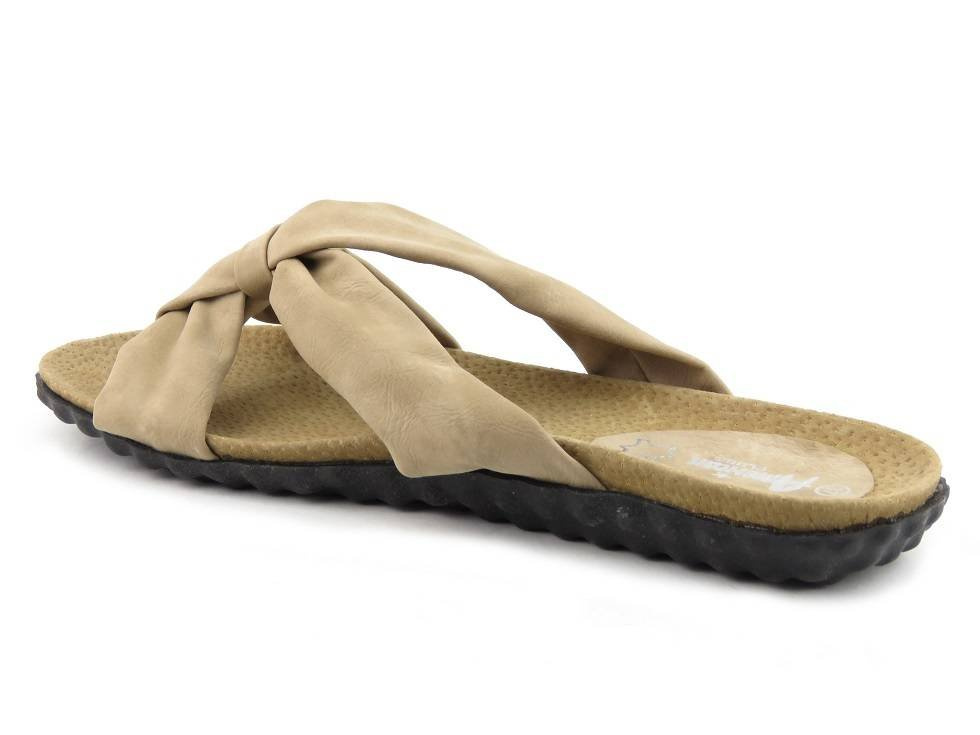 Klapki damskie ze skórzaną wkładką - AMERICAN CLUB XH 111009-1, beżowe
