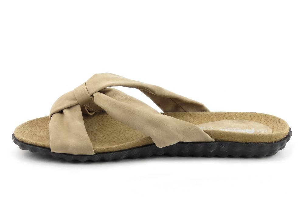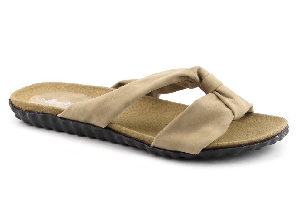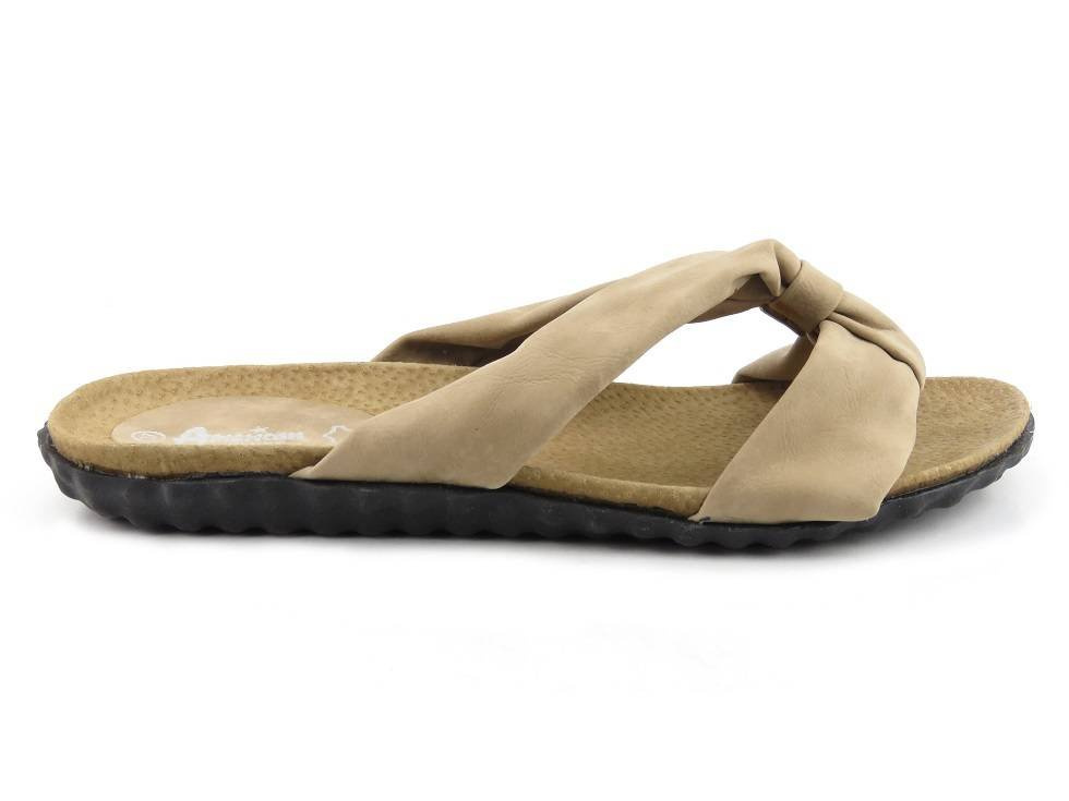 Klapki damskie ze skórzaną wkładką - AMERICAN CLUB XH 11109-1, beżowe