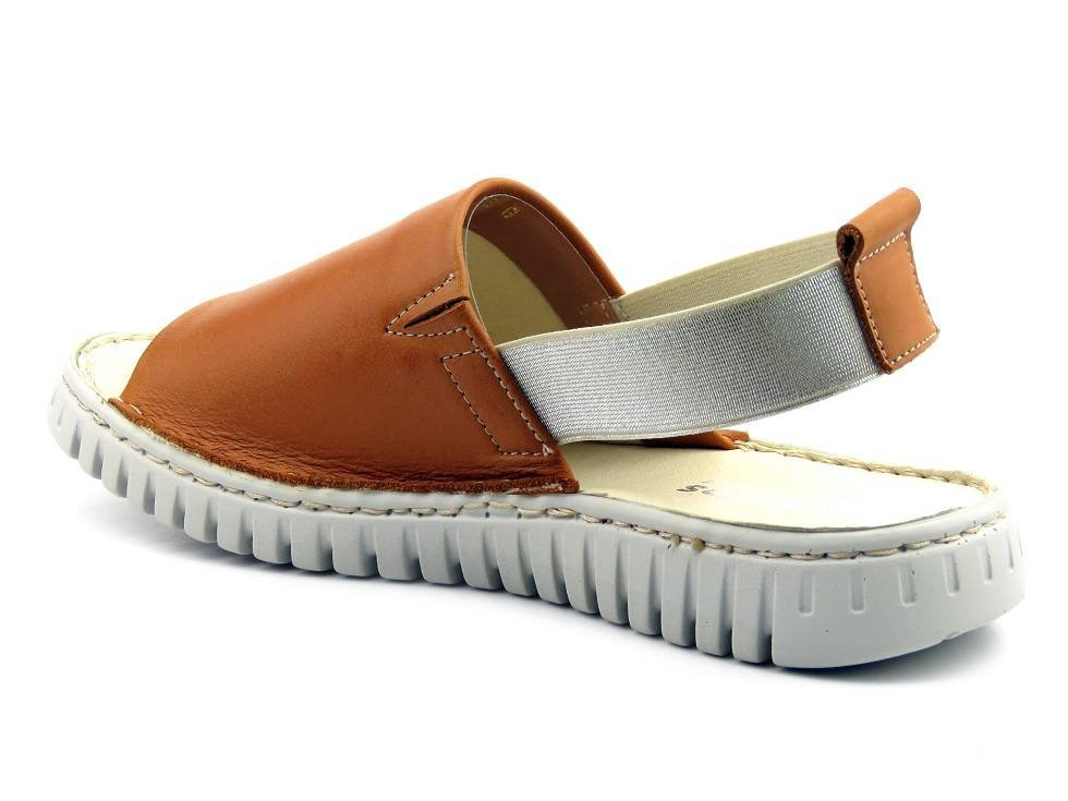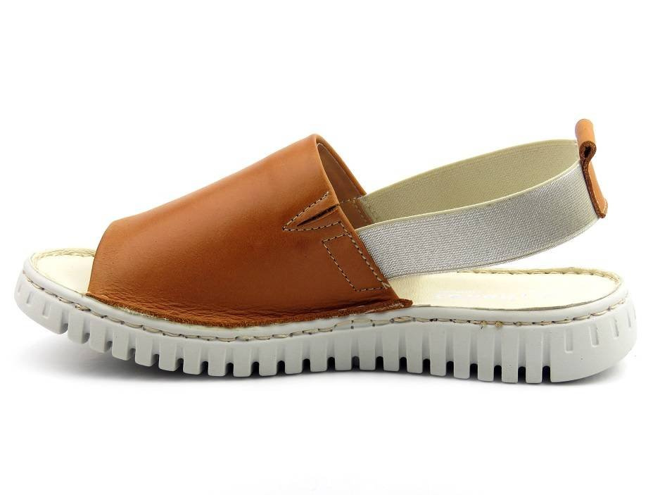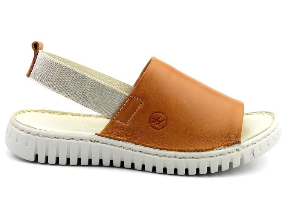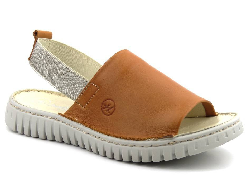Skórzane sandały damskie na gumkę - HELIOS Komfort 261, jasnobrązowe