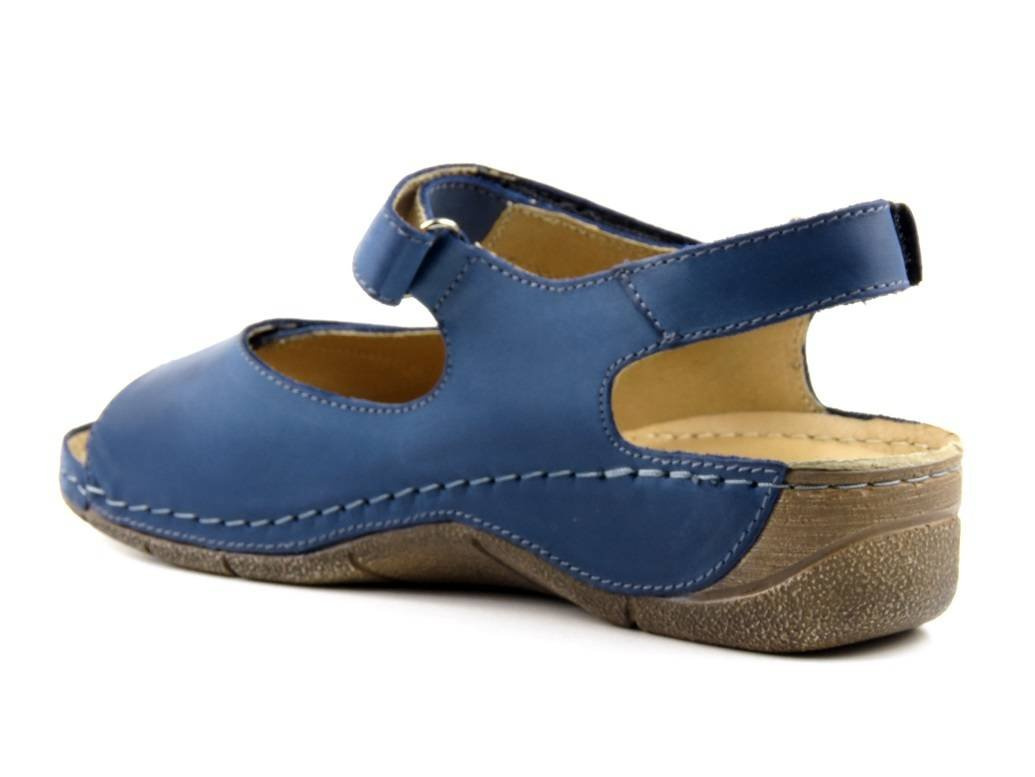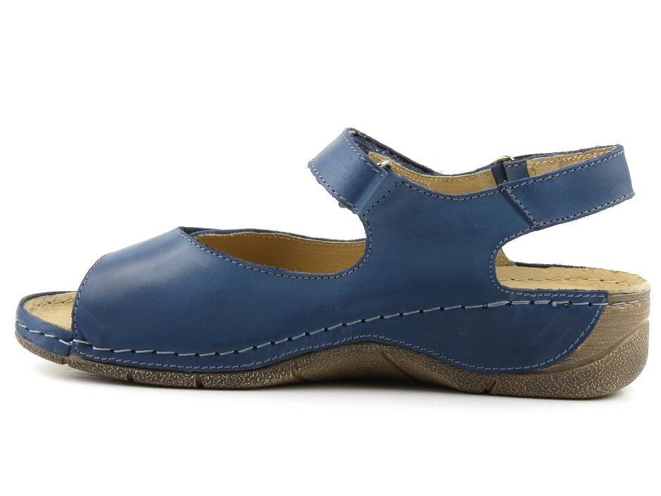 Skórzane sandały damskie na grubej podeszwie - Helios Komfort 266, granatowe