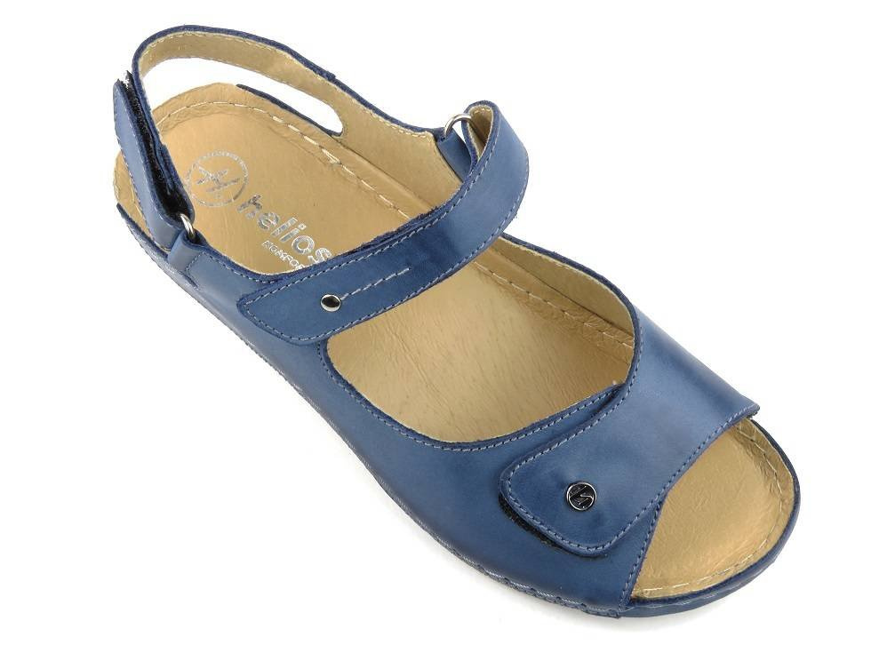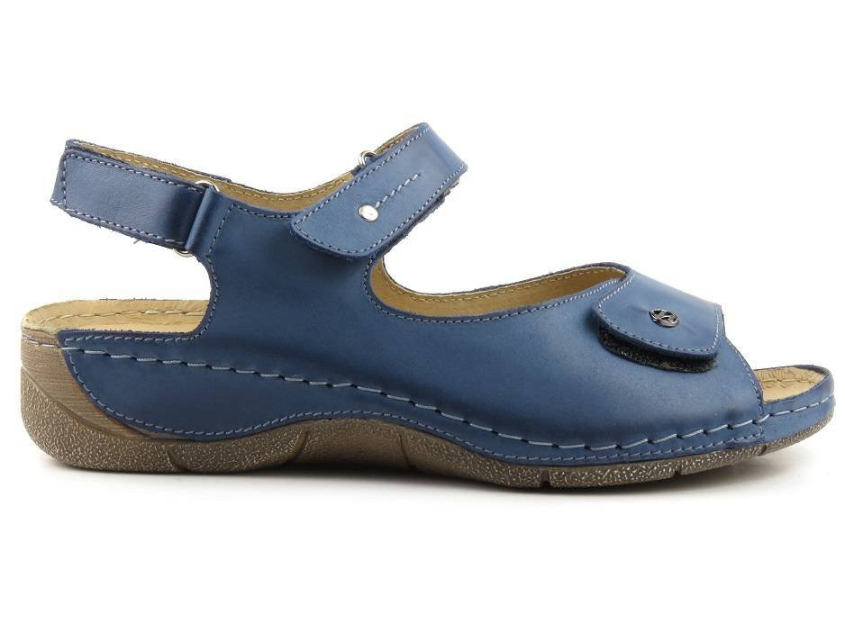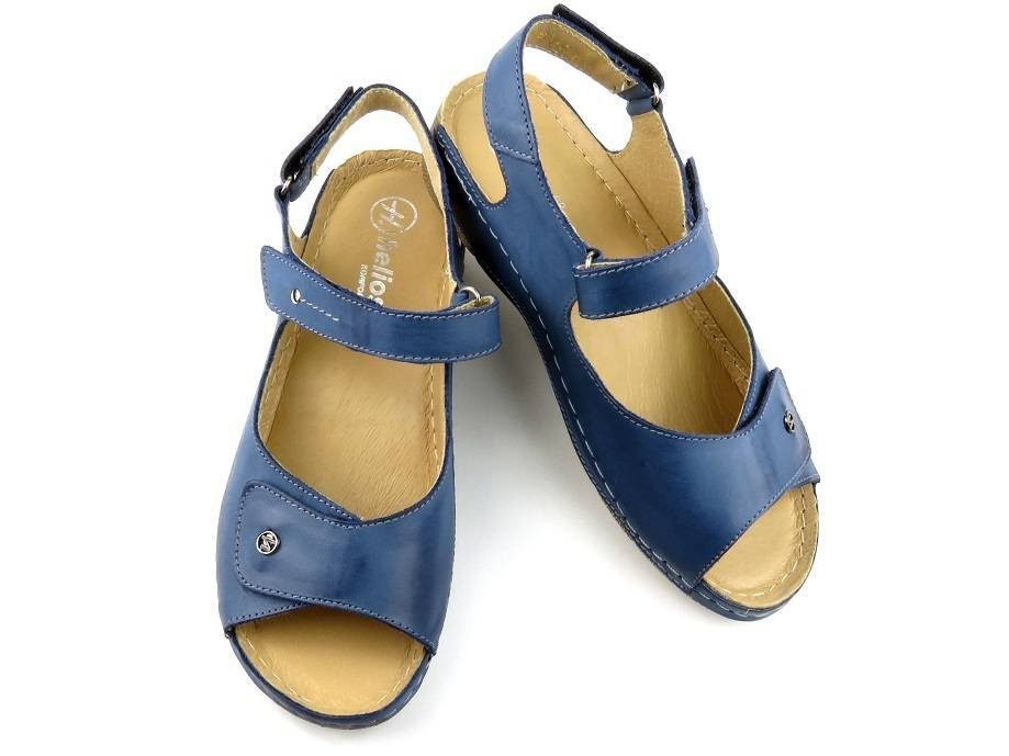 Sandały damskie cenionej polskiej marki Helios Komfort zostały wykonane z wysokiej jakości skóry naturalnej licowej. Miękka, skórzana wyściółka zapewnia wysoki komfort dla stóp. Pod wkładką znajduje się miękka gąbka SOFT. Zapięcie na rzepy pozwala na szybkie i wygodne zakładanie obuwia. Trzy regulowane paski umożliwiają dobre dopasowanie cholewki do stopy. Podeszwa z PU jest lekka i elastyczna.