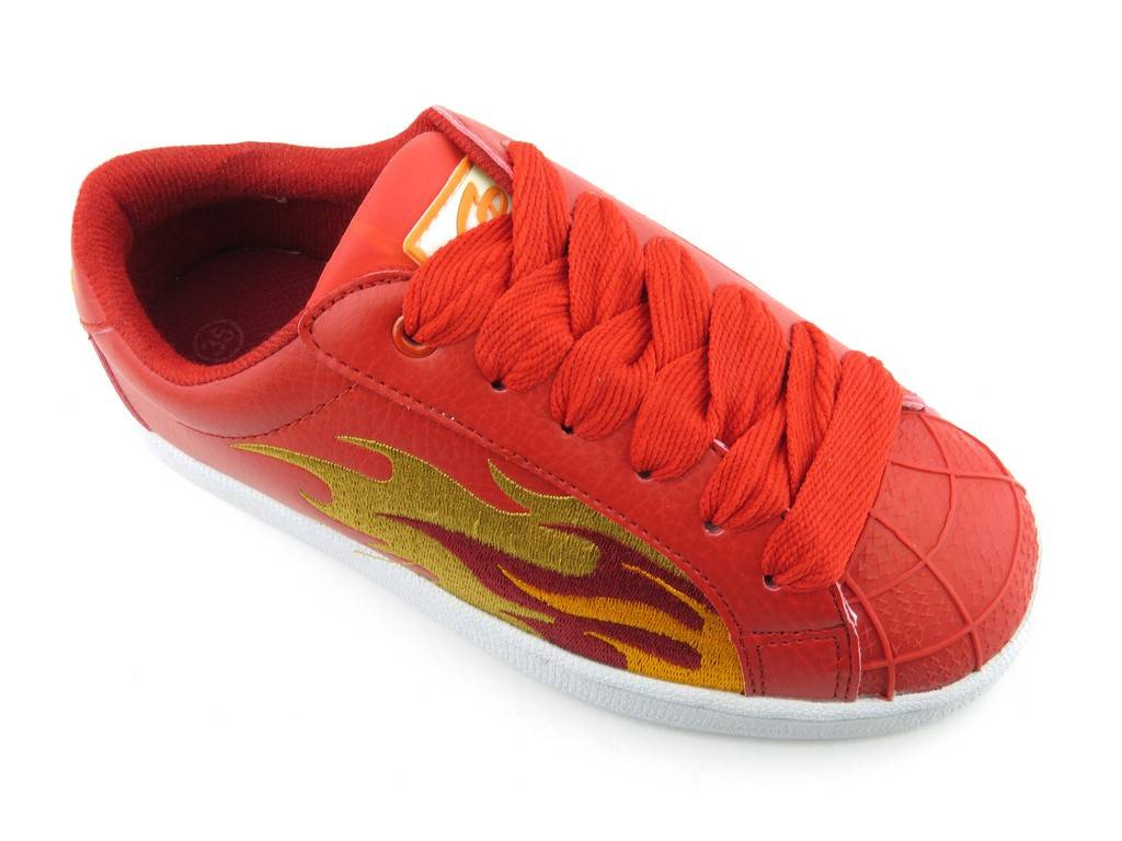 Buty dziecięce sportowe z płomieniami - Sunrise XY223-1, czerwone
