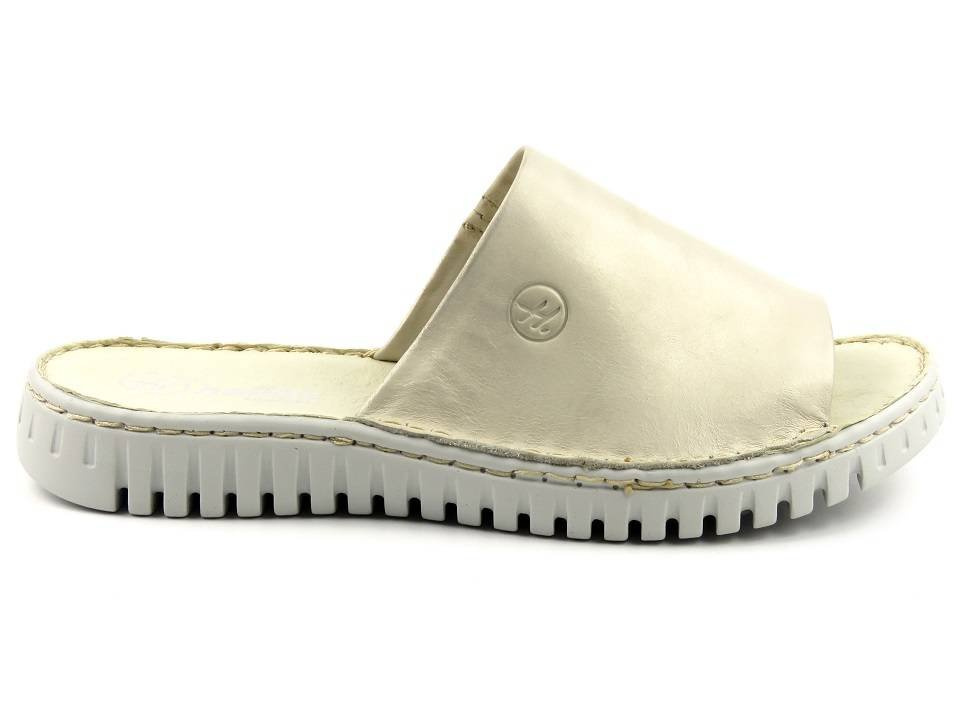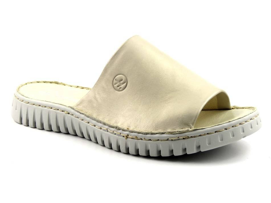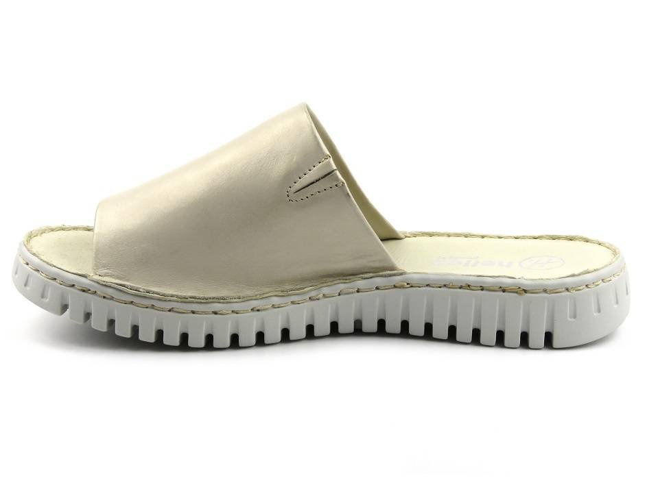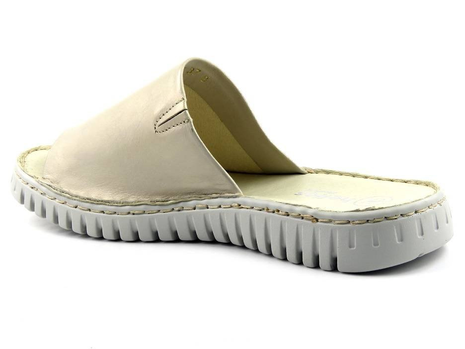 Skórzane klapki damskie na białej podeszwie - HELIOS Komfort 255, złote