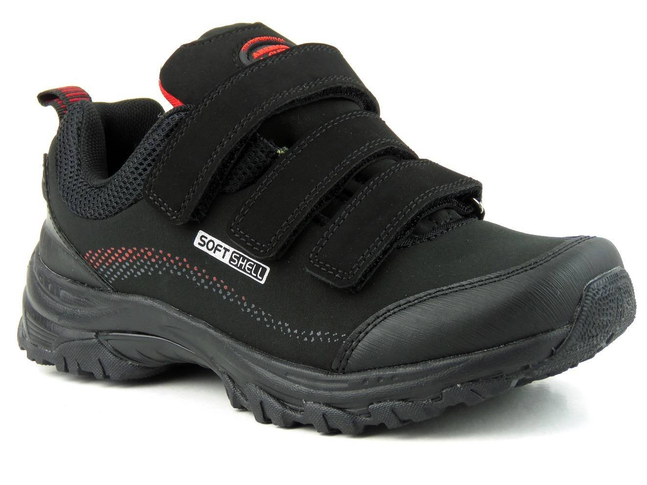 Trekkingi damskie zapinane na rzepy - AMERICAN CLUB WT52/21(22), czarno-czerwone