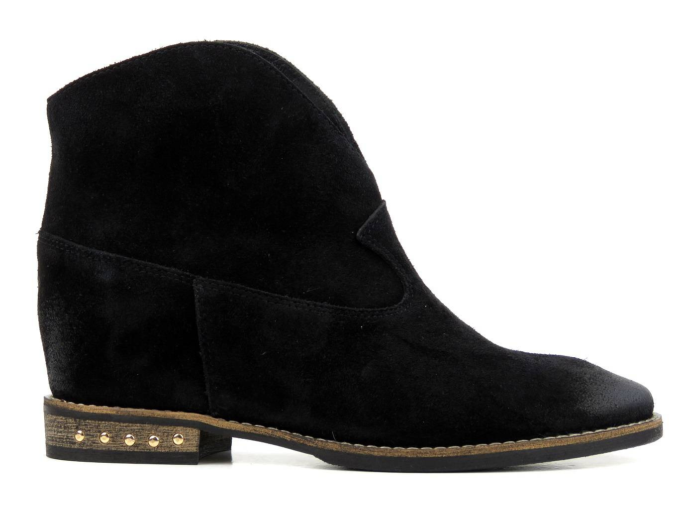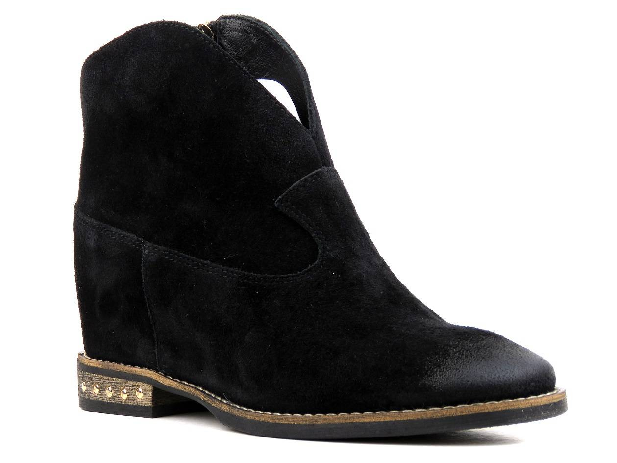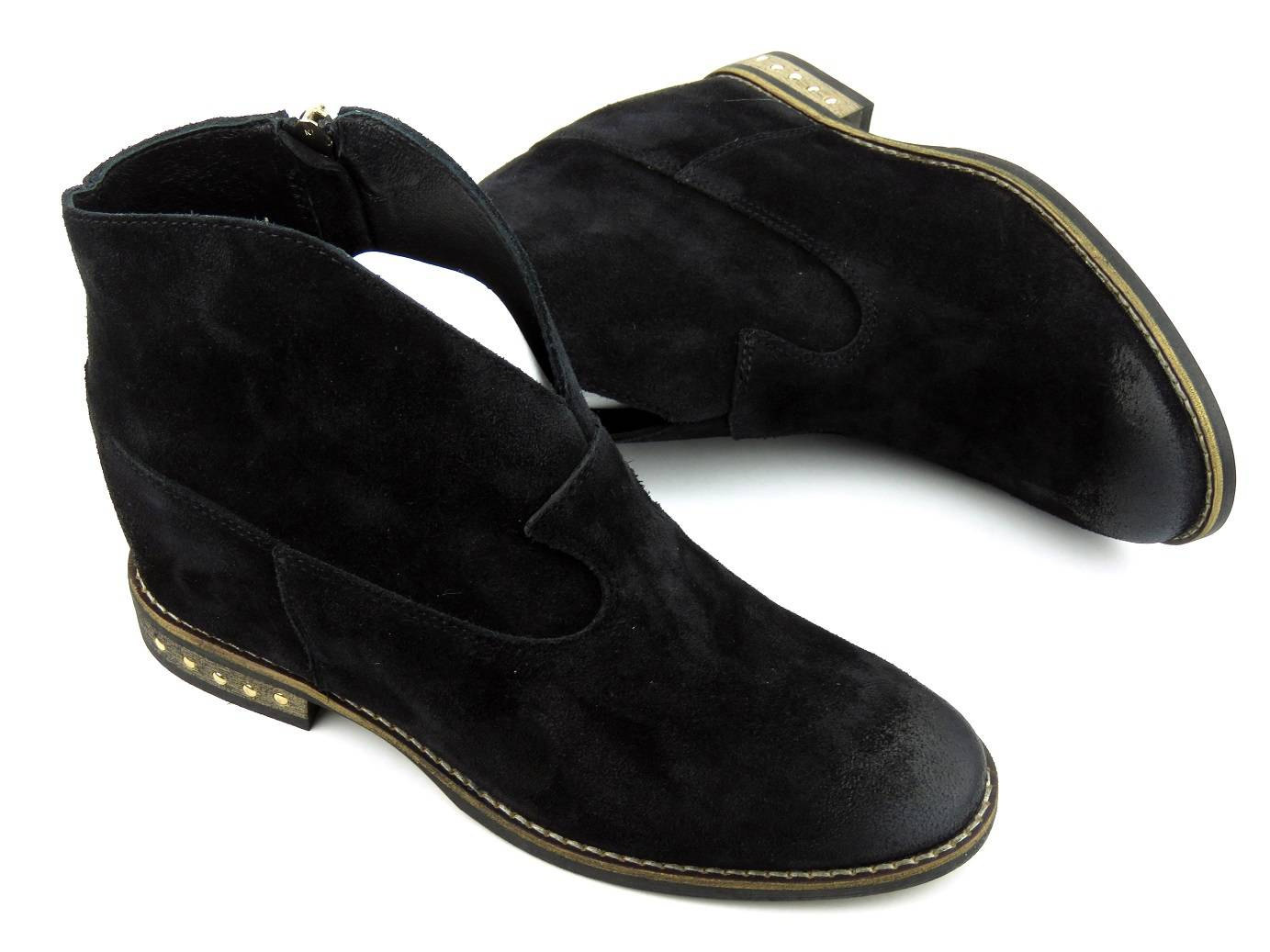 Zamszowe botki, kowbojki damskie na ukrytym koturnie - CARINII B5302, czarne
